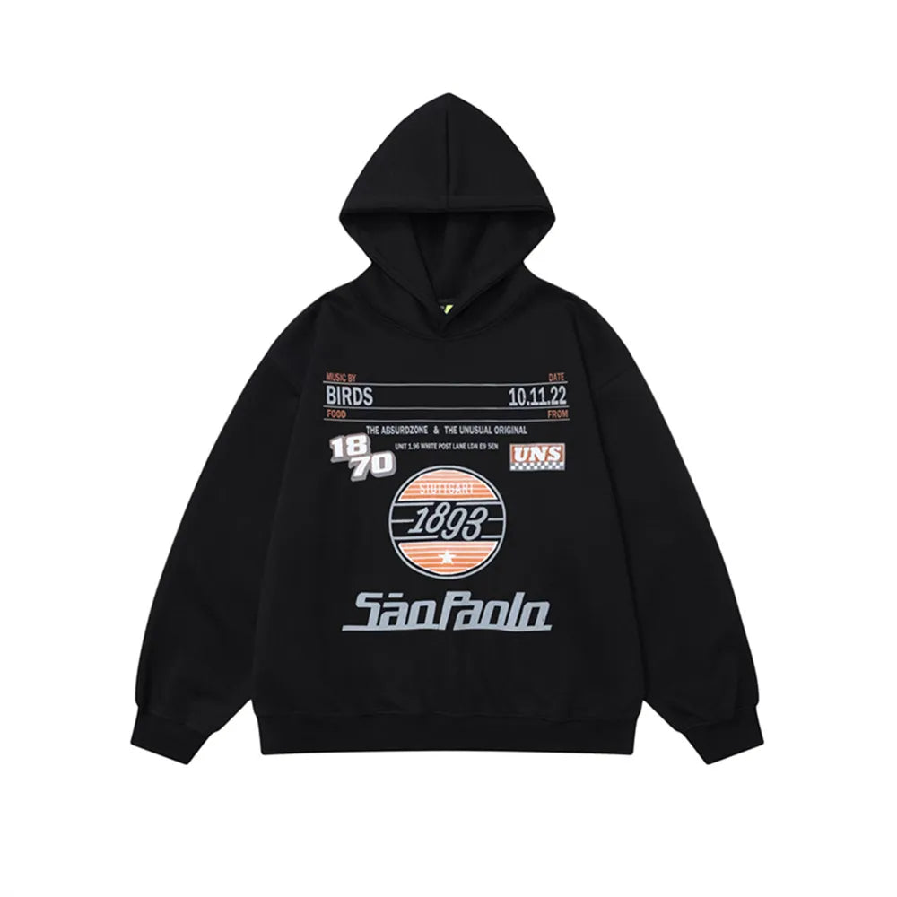 The 1893 Urban Racing Print Hoodie features bold racing-inspired graphics. merging vintage motorsport vibes with contemporary urban style for a dynamic streetwear statement.
