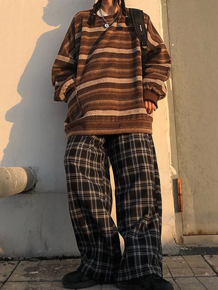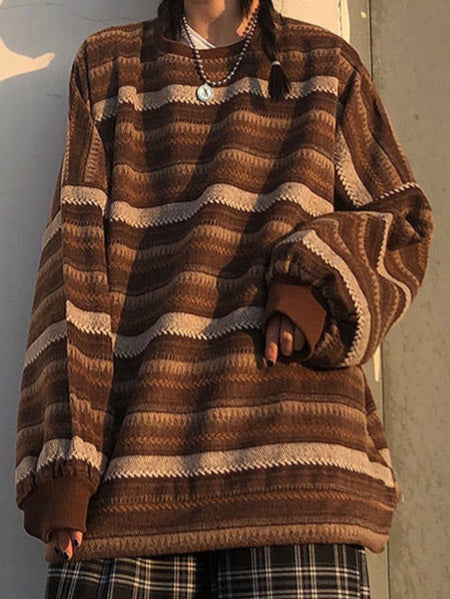 Crafted from a soft. cozy fabric. this sweater features a warm colour palette with horizontal stripes in various shades.