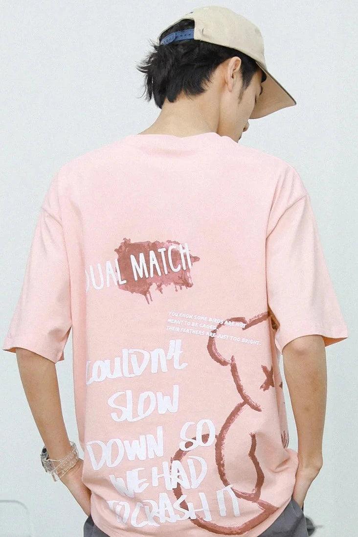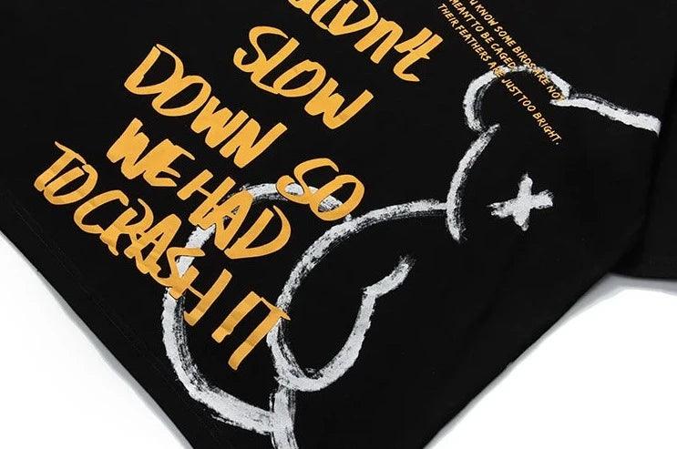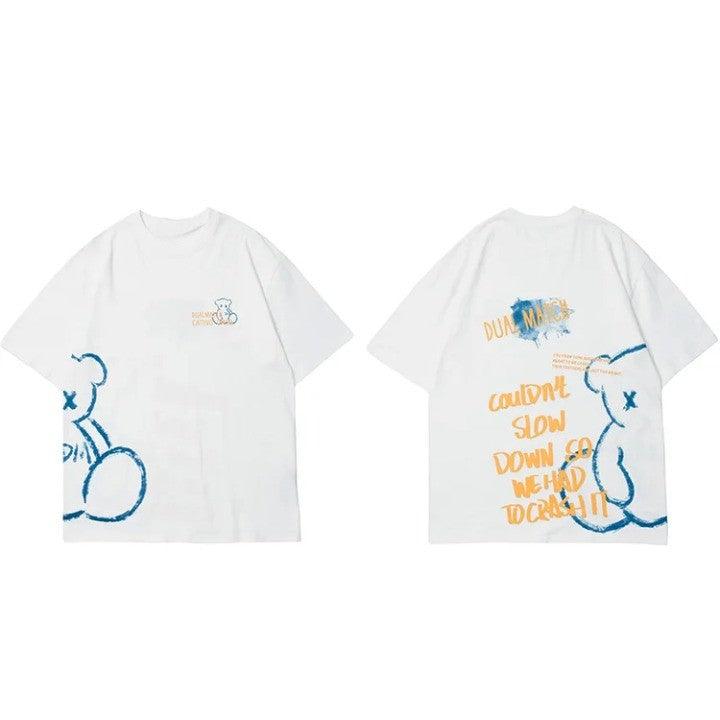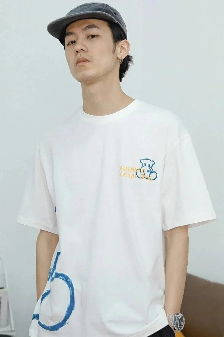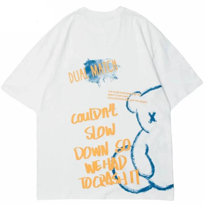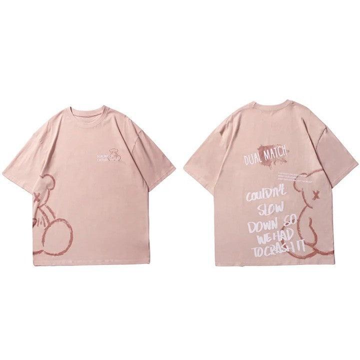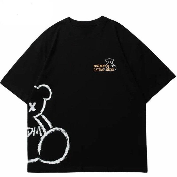Bear Letter Printed T Shirt. Crafted from cotton with an O-neck collar. Vintage gothic vibes with bold print.