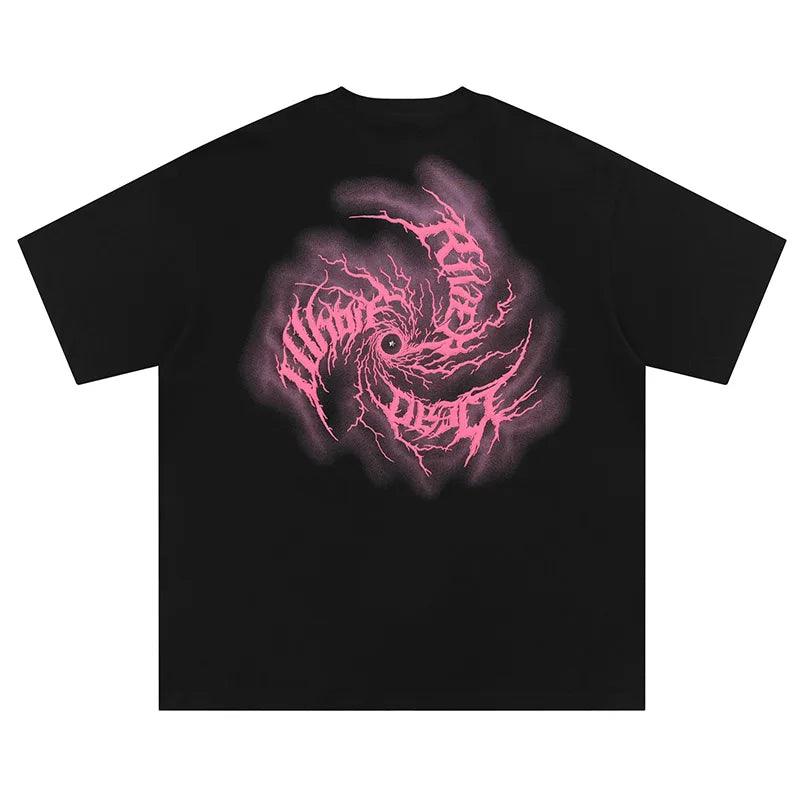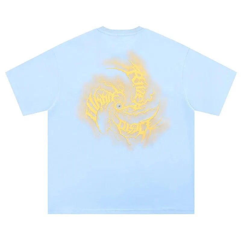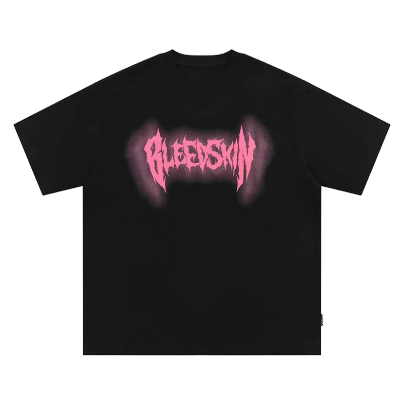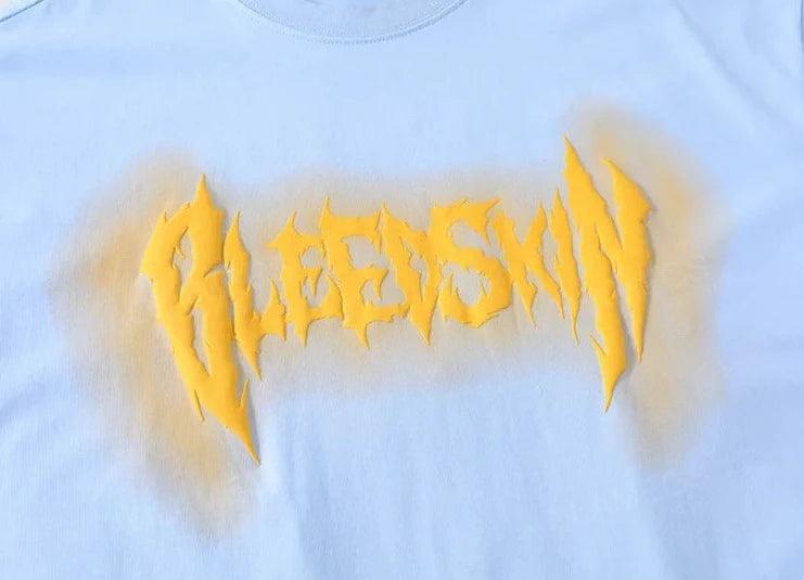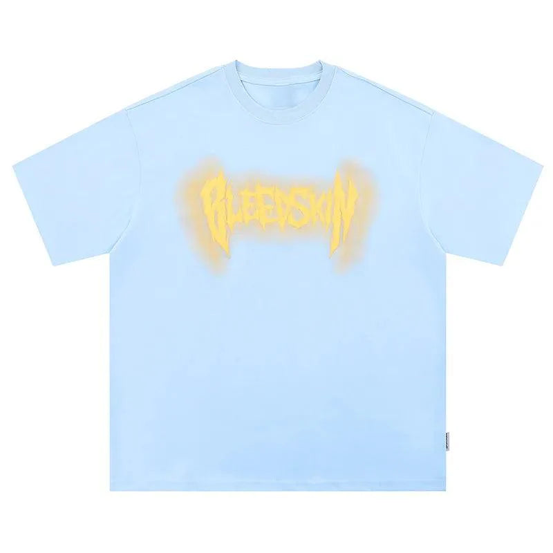 "Bleed Skin" Letter Printed T-Shirt - Vintage street style meets abstract patterns. Cotton. O-neck. broadcloth fabric for a timeless look.
