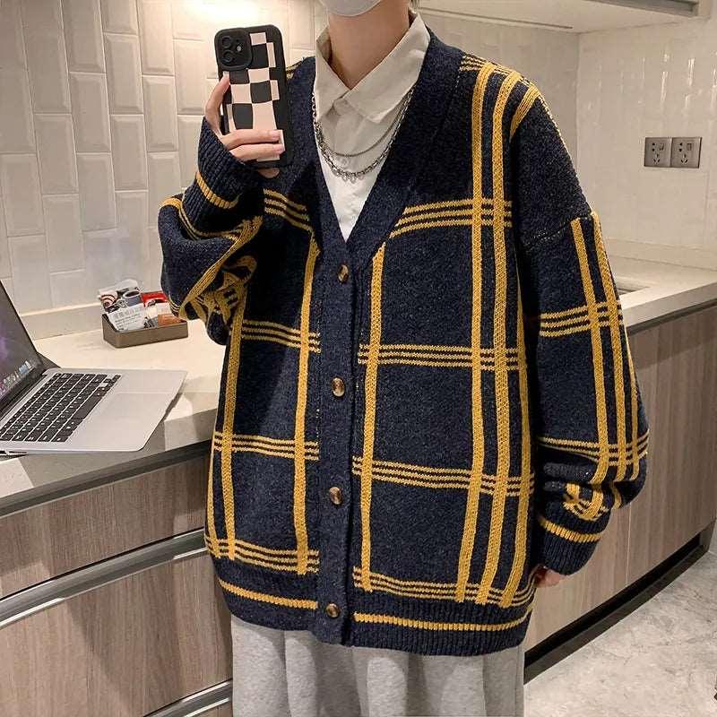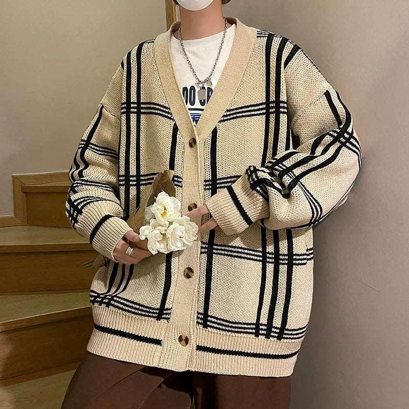 This cardigan sweater is made of polyester. making it suitable for both spring and autumn seasons. Its England style is influenced by classic British fashion. with a standard thickness that is perfect for casual wear.
