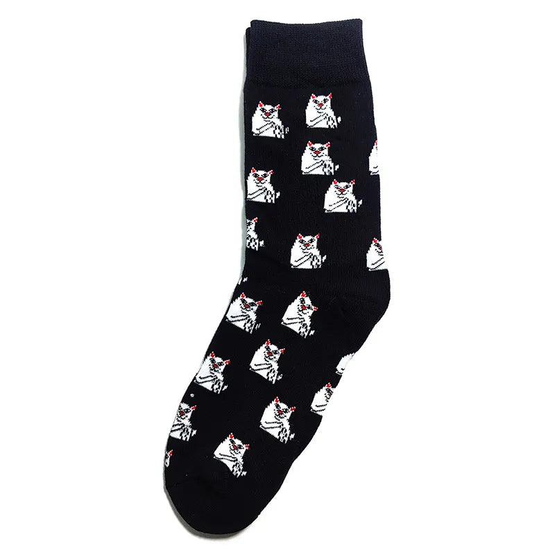 Consider these Cartoon Kawaii Socks for your casual sock needs. These socks feature a standard thickness and a fun cartoon pattern and come in one piece. Made of cotton. they have a middle tube height for comfort.