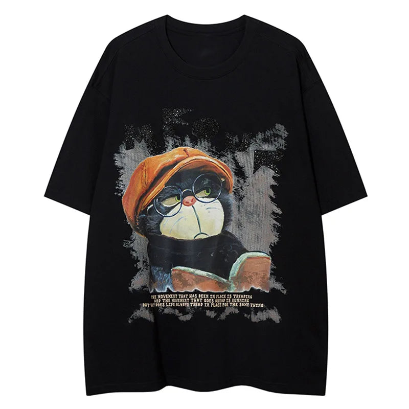 Discover Vonvex's Casual Classy Cat Oversized T-Shirt. Crafted from cotton broadcloth with an O-neck collar and charming cartoon cat pattern. Perfect for comfortable. stylish casual wear.