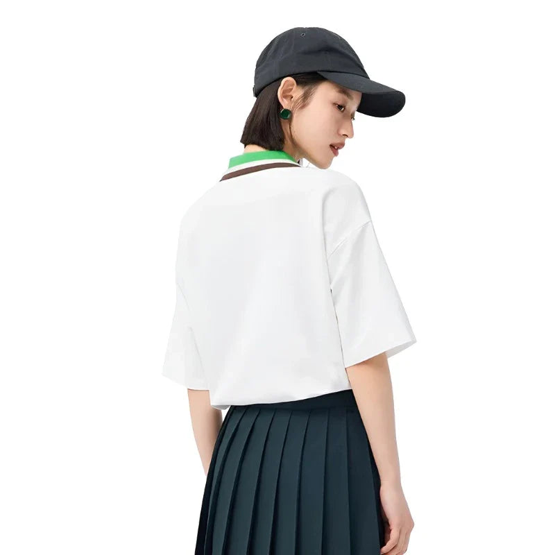 Introducing Vonvex's Casual Polo Women's T-Shirt. Crafted from cotton with slight stretch. it features a loose fit and letter pattern. combining comfort with style.