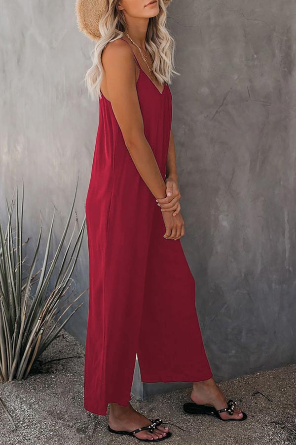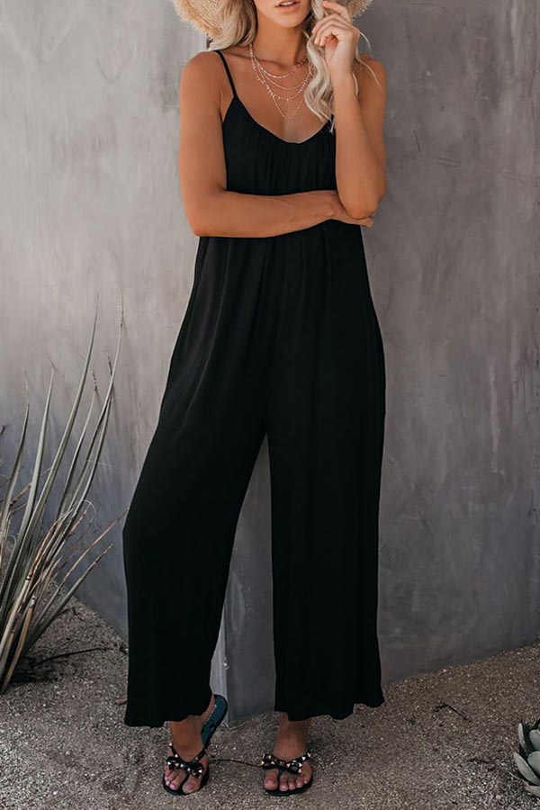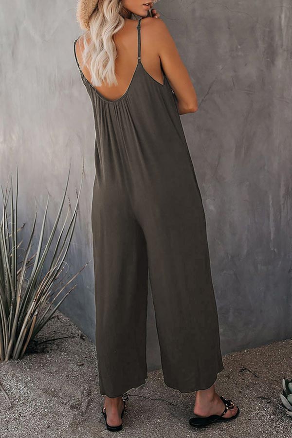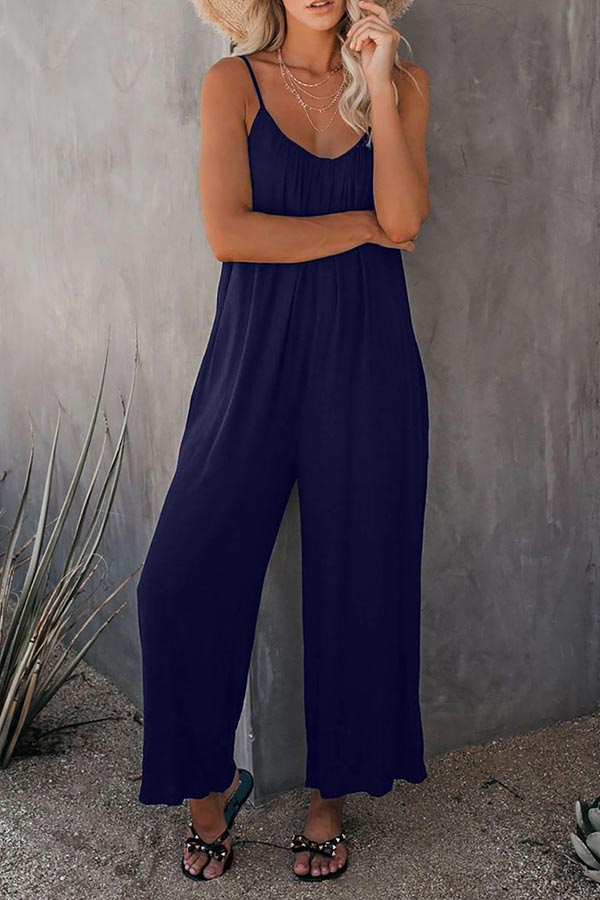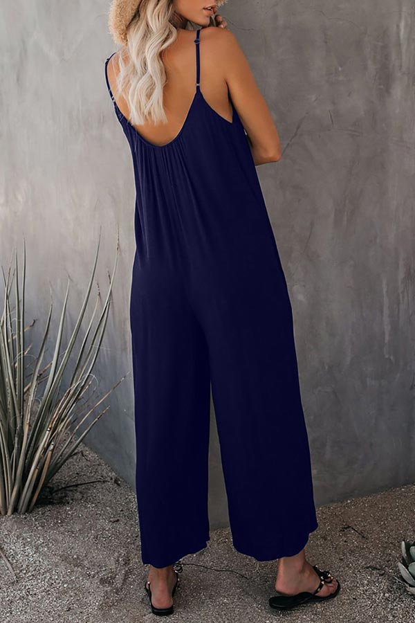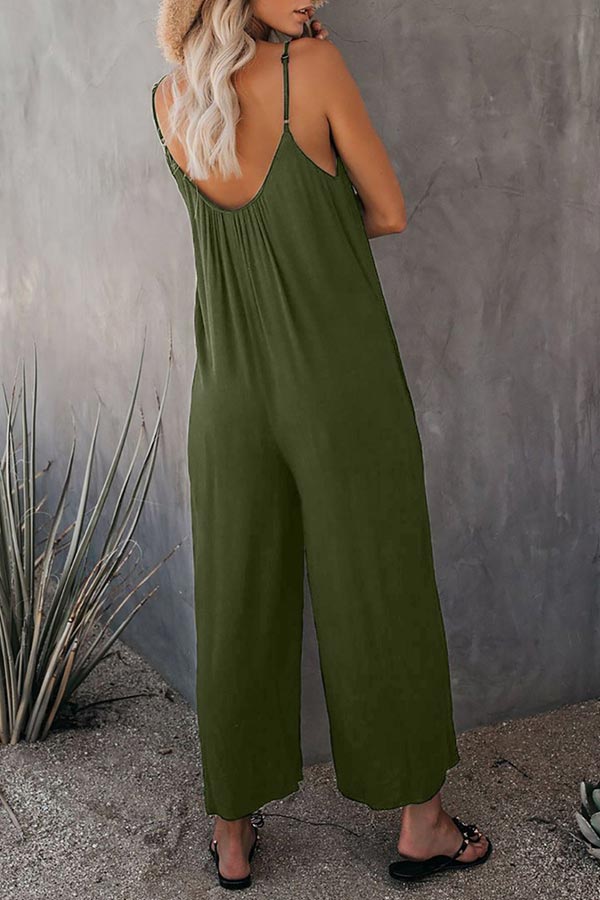 Casual Sling Solid Color Pocket Jumpsuit