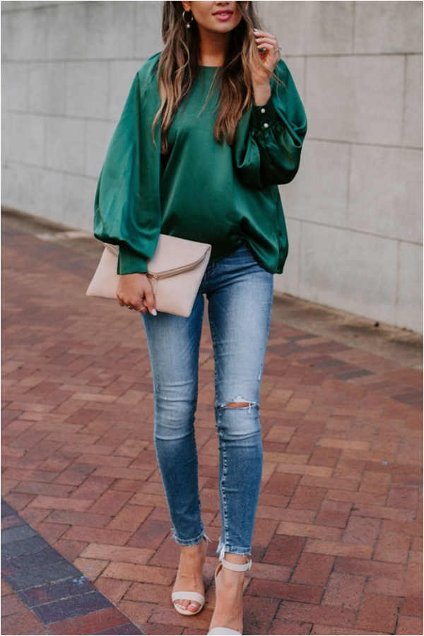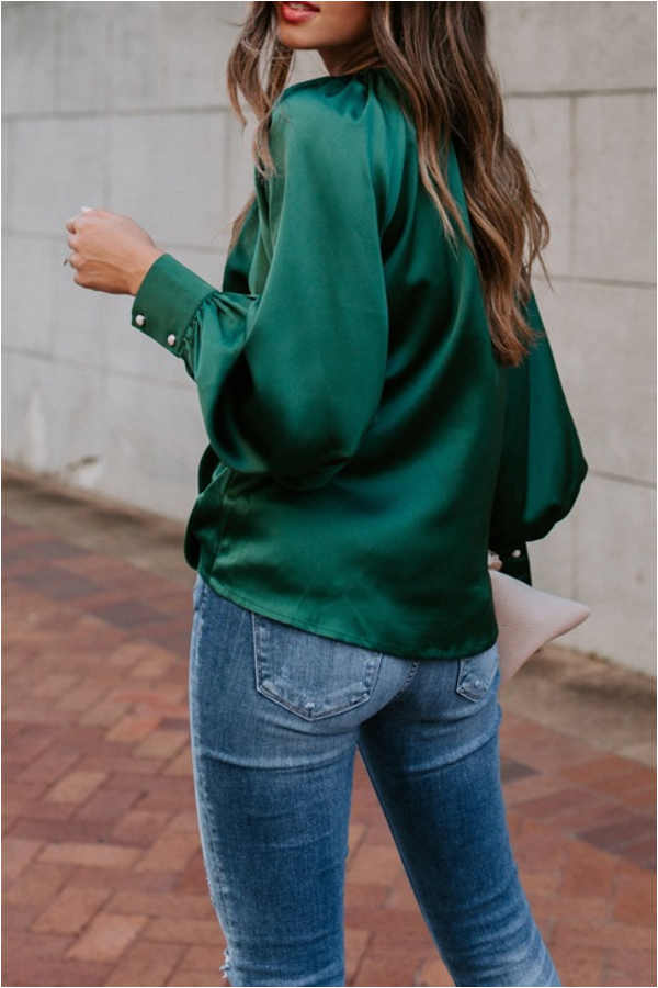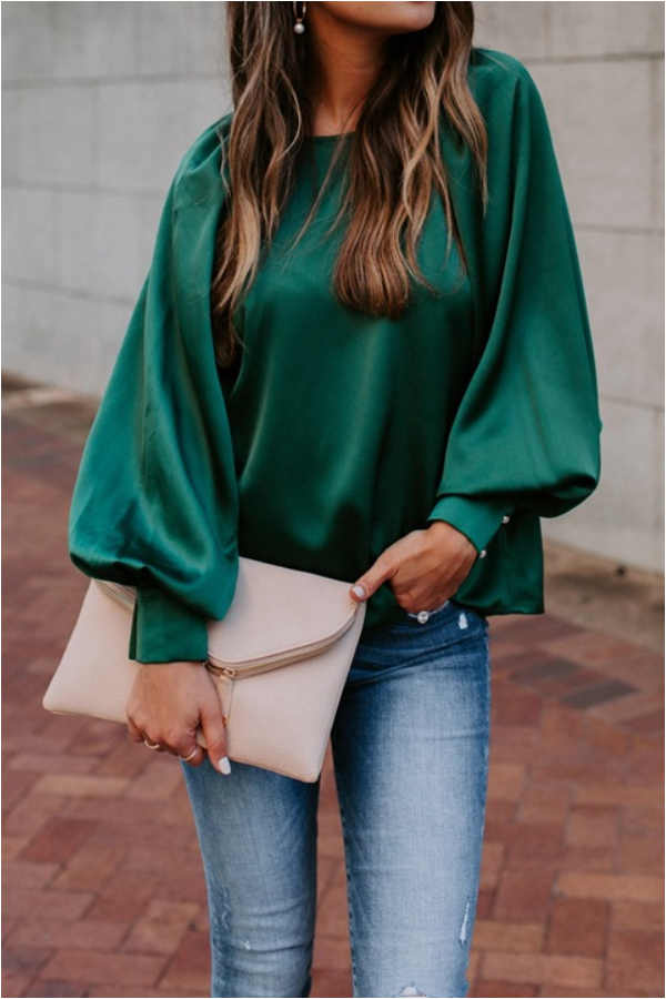 Casual Solid Color Lantern Sleeve Top