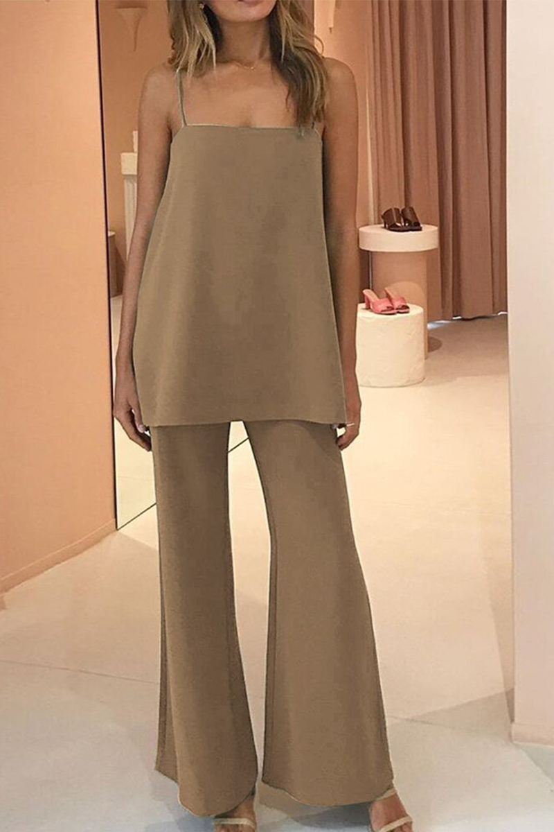 Casual Solid Split Joint Spaghetti Strap Sleeveless Two Pieces(4 colors)