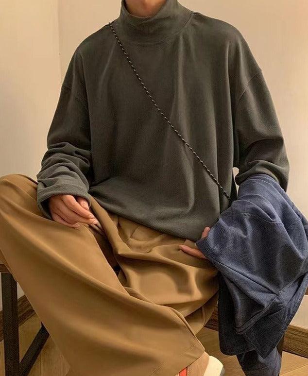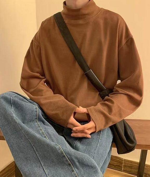 Elevate your casual look with our Casual Turtleneck T-Shirt. Made from polyester fleece. featuring a solid pattern.