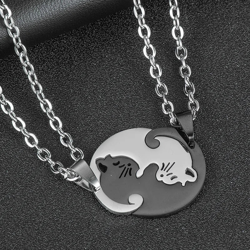 Add a touch of whimsy with our Cat Necklace for Couples. Crafted from copper alloy. this charming piece features a cat-shaped pendant on an O-chain. perfect for parties or daily wear. Ideal for expressing your playful and stylish side. it's a must-have accessory for any cat lover.