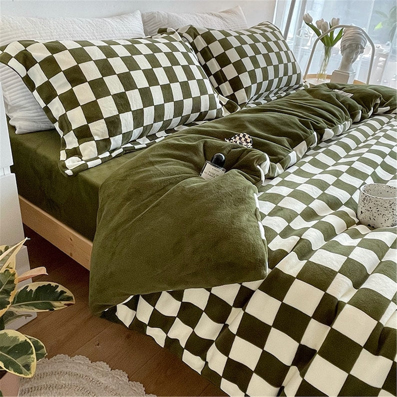 Indulge in the ultimate slumber experience with the Checkerboard Bedding Set. where softness meets sophistication in a calming latte color palette.