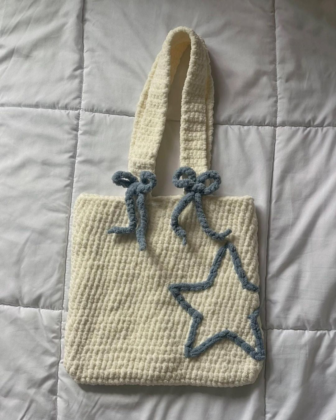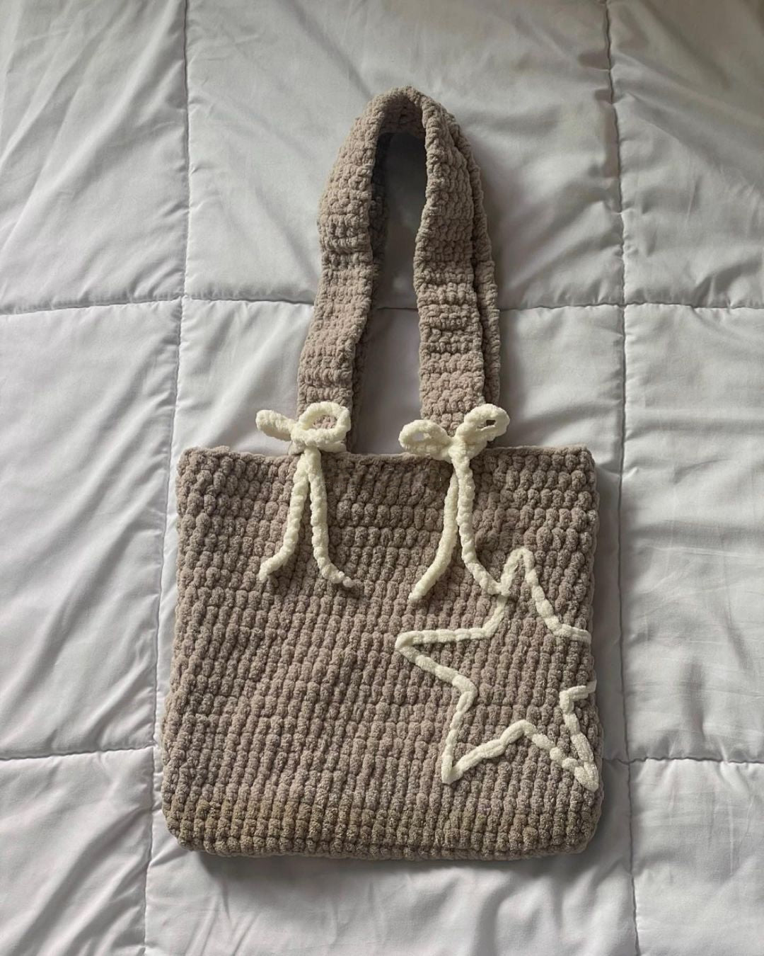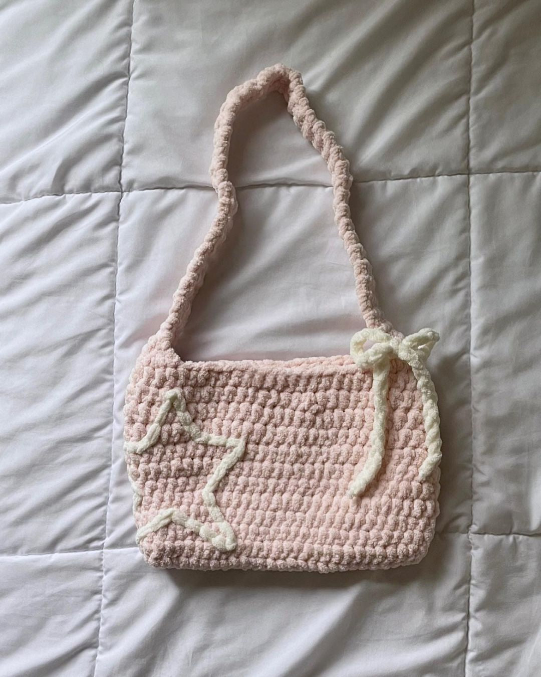 This crochet bag is expertly crafted ensuring a durable and high-quality construction. It features a hollow star and bow detail.