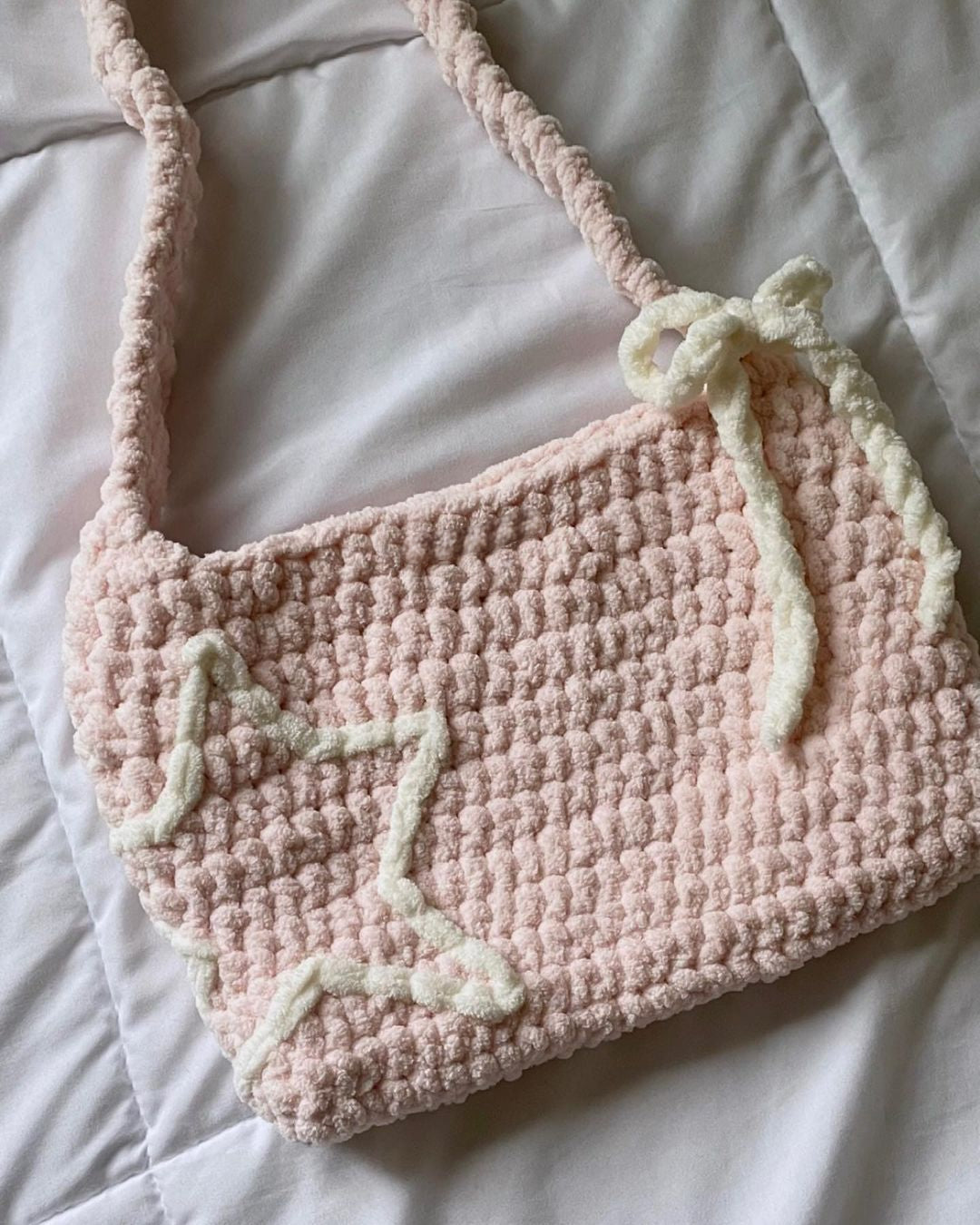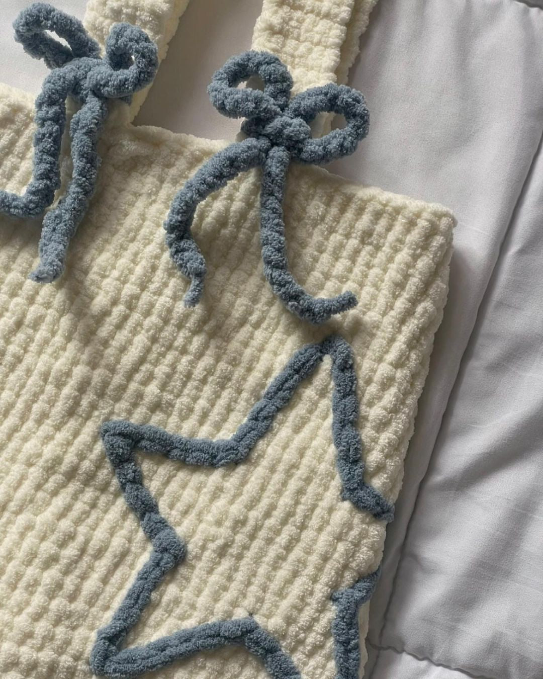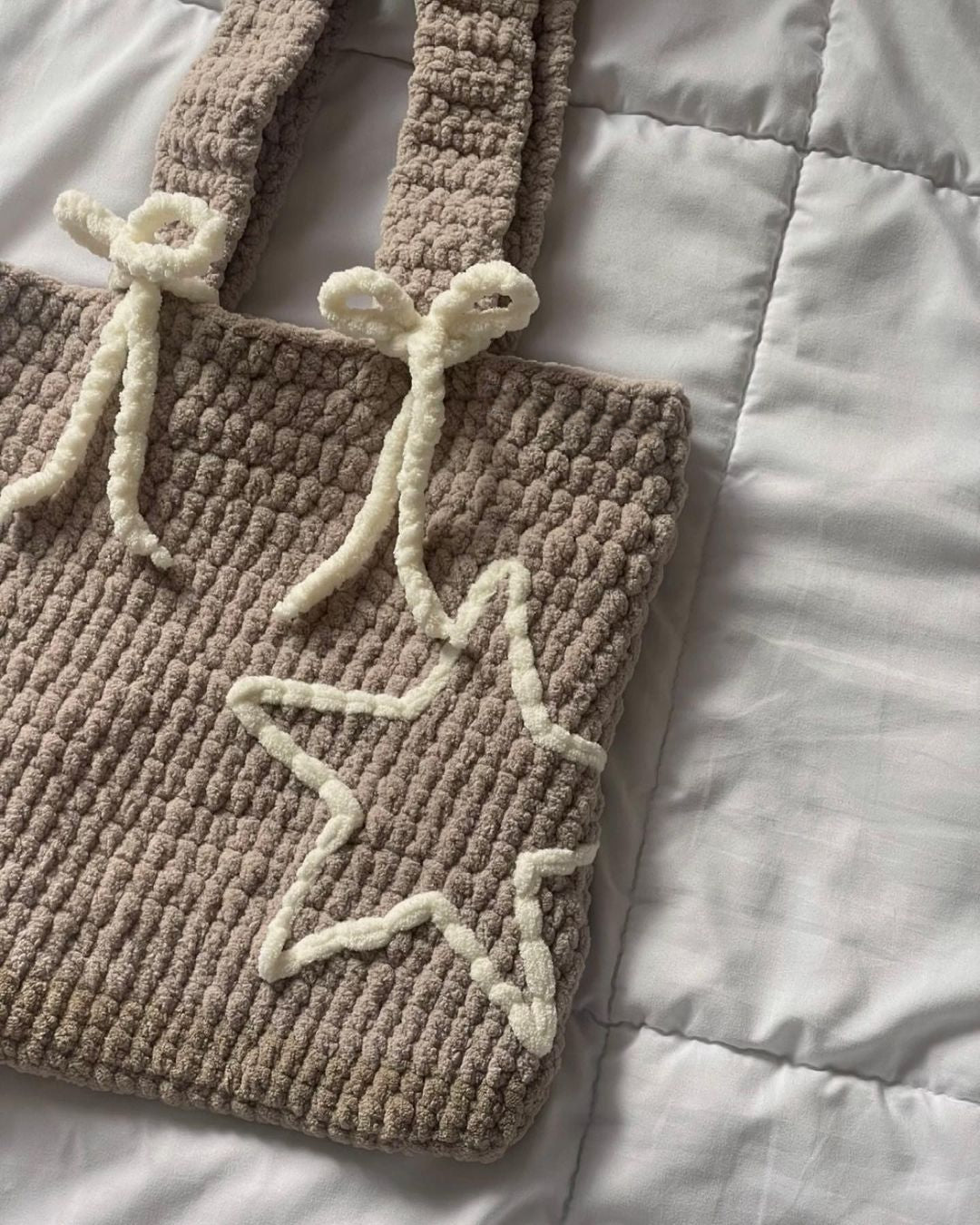 This crochet bag is expertly crafted ensuring a durable and high-quality construction. It features a hollow star and bow detail.