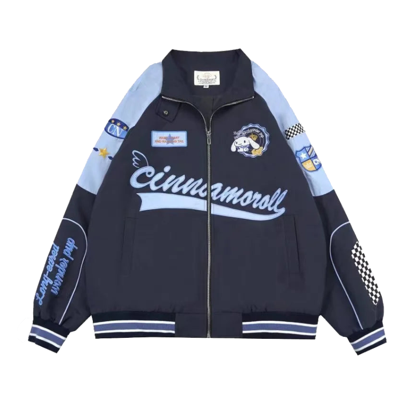 The Cinnamoroll Loose Jacket brings a playful. cozy vibe with its relaxed fit and adorable Cinnamoroll design. perfect for adding a touch of whimsy to your everyday style.
