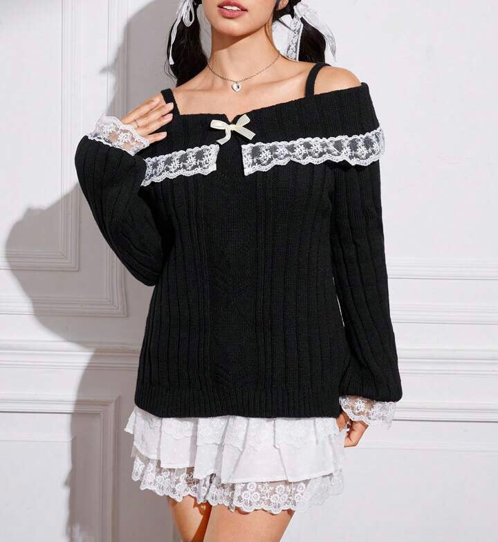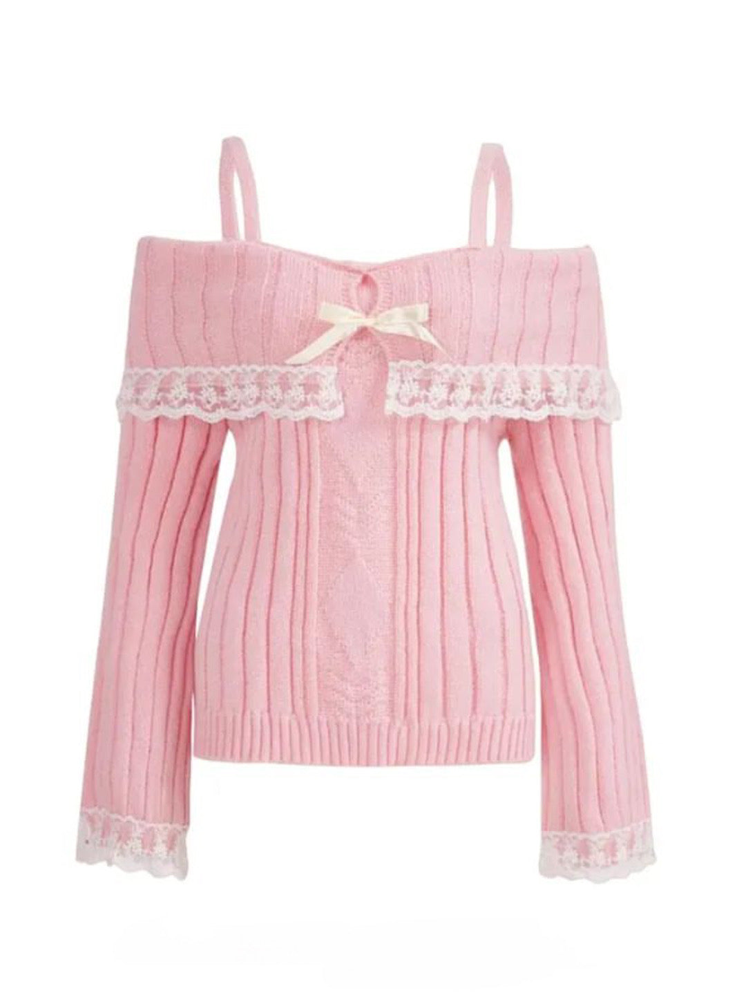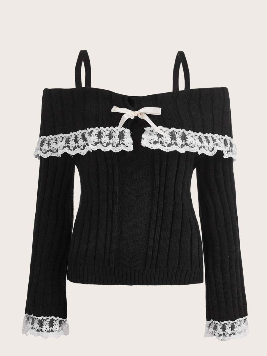Crafted with knitted fabric. this sweater features a chic cold shoulder design. adding a touch of allure to any ensemble.