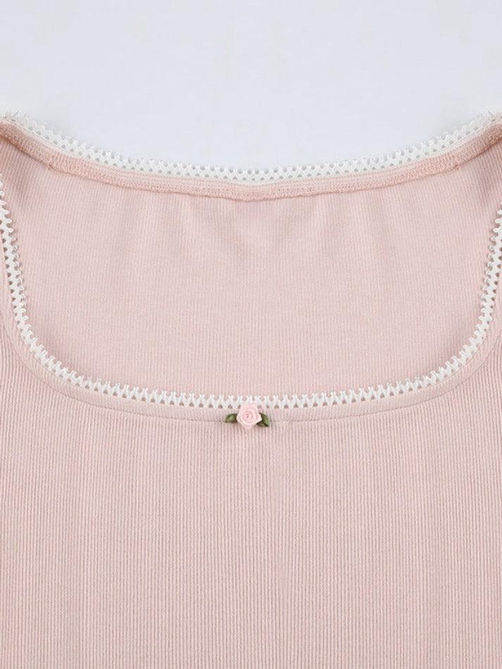 Feminine Details: The delicate flower decor and contrast color lace trim add a girly and feminine touch to the top. making it perfect for those who love a sweet. girlish style.