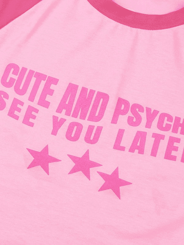 Description: Raglan sleeve tees are retro and back on trend this season. These baby tees have a slim fitting style in a cropped length. with contrast paneled sleeves style. and features letter star printed design on the front.