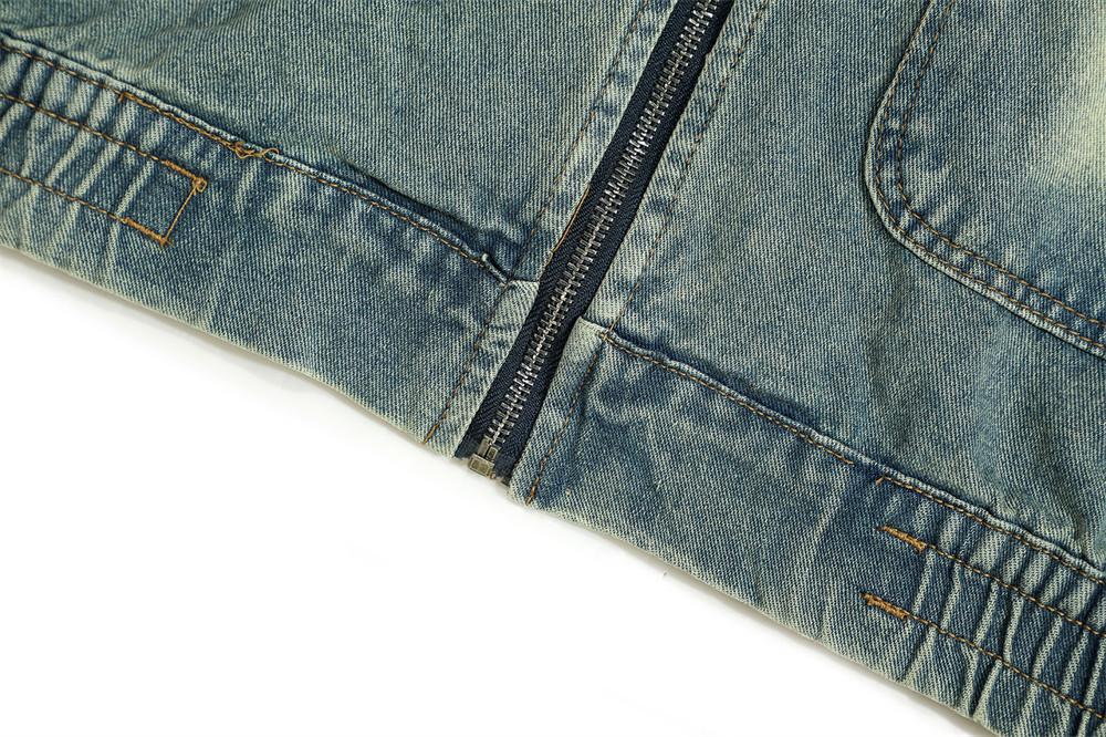 Vonvex's Denim Leather Collar Jacket combines rugged denim with a sleek leather collar for a bold streetwear vibe. Crafted from 80% cotton. it's durable yet comfortable—perfect for layering on cool days.