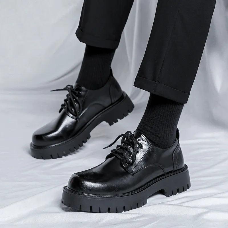 Constructed from split leather. Derby Thick Heels Leather Shoes provide comfort and style with their slip-on closure and solid pattern. The outsole is made of rubber for durability. while the insole is PU material for added comfort. Enjoy the benefits of breathable and massage features for casual occasions.