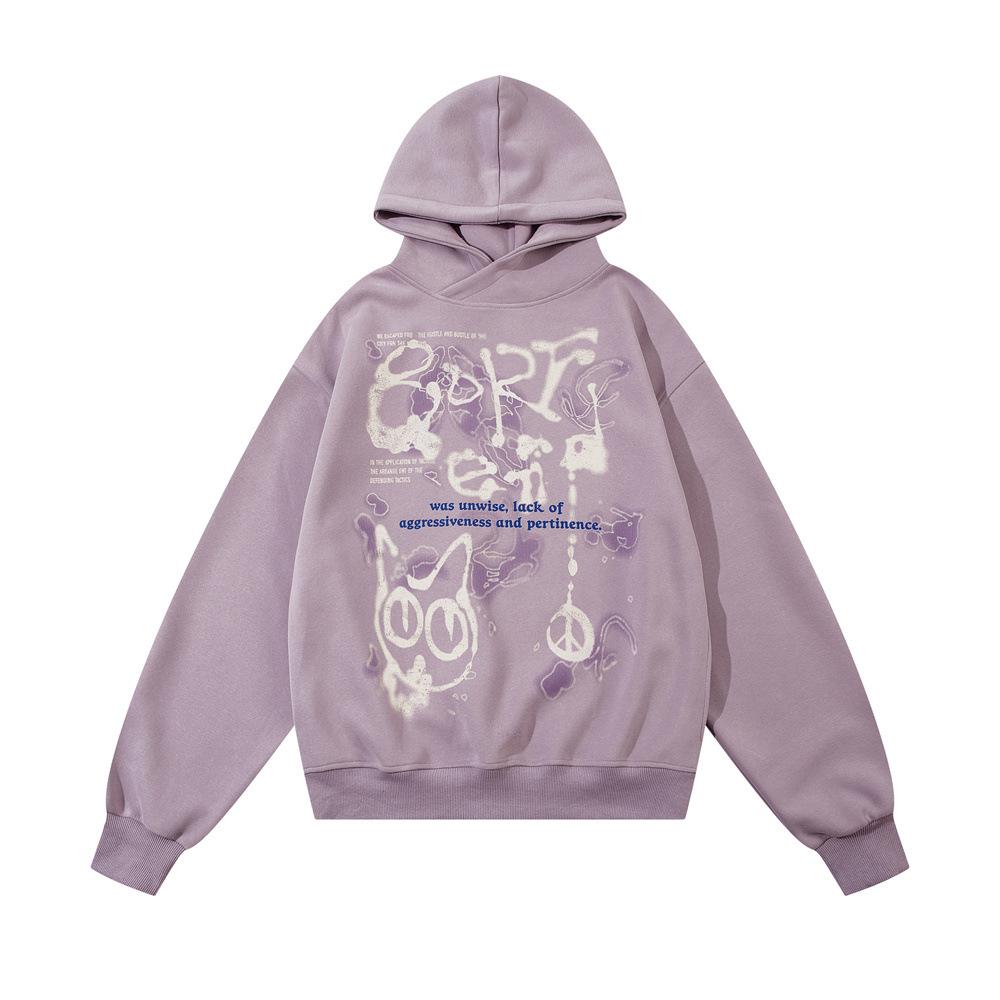 The Diamond Cat Graffiti Oversized Hoodie showcases a playful. artistic design that combines street style with cozy comfort for a unique statement piece.