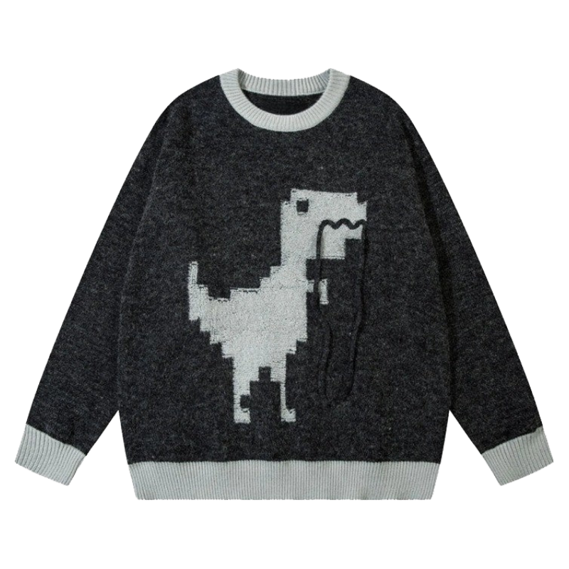 The Dino Vibe Knit Sweater brings playful dinosaur motifs to a cozy. knitted design. offering a fun and comfortable way to add a touch of whimsy to your wardrobe.