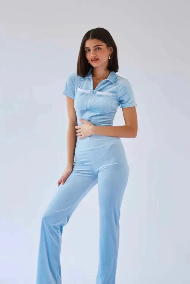 Turn heads in this sleek double-pocket velvet jumpsuit. The bodycon fit hugs your figure. exuding an air of confidence and mystery.