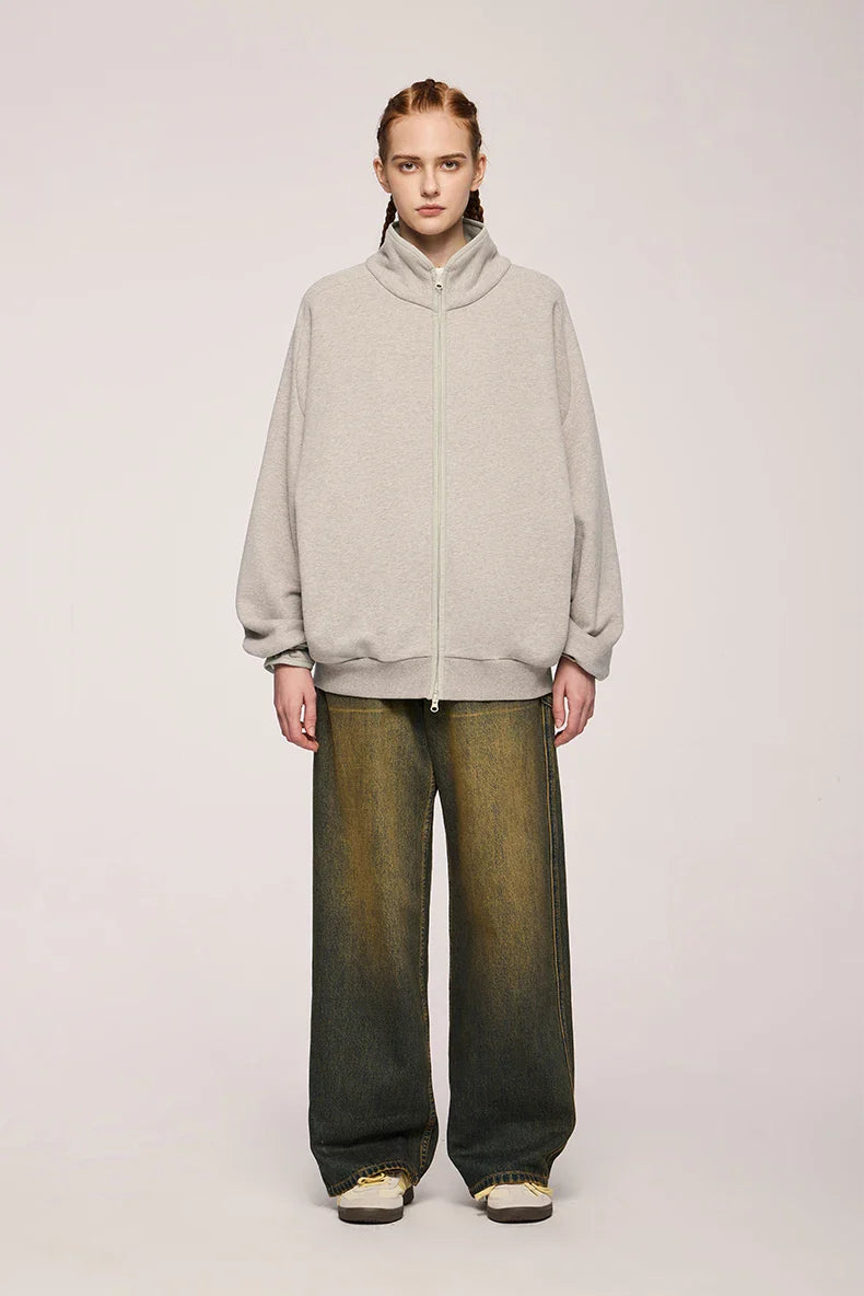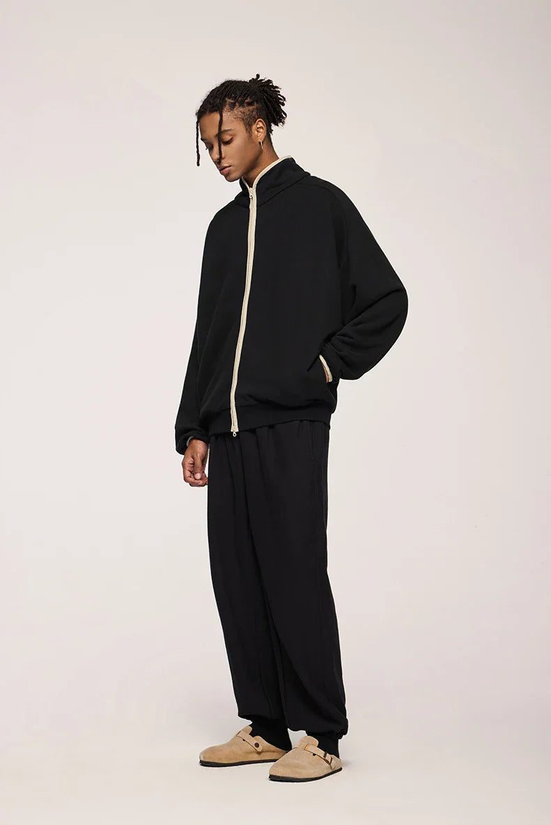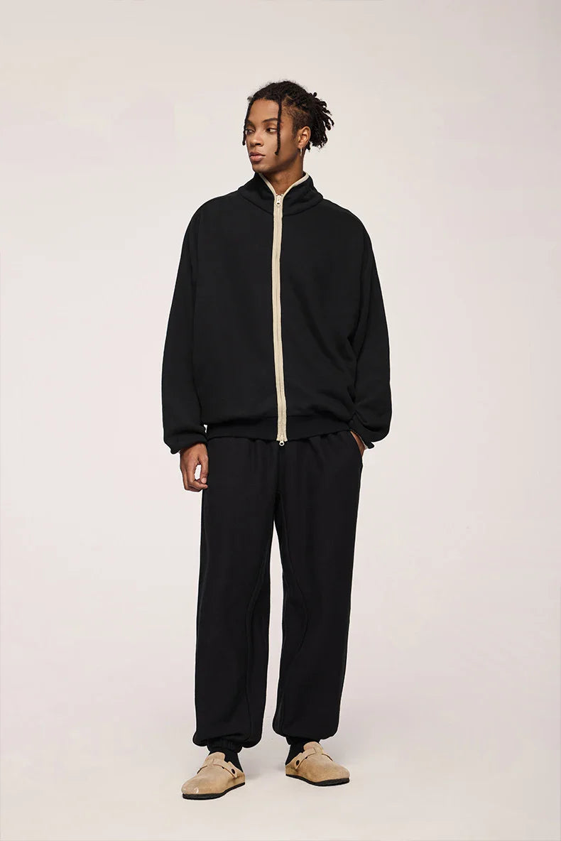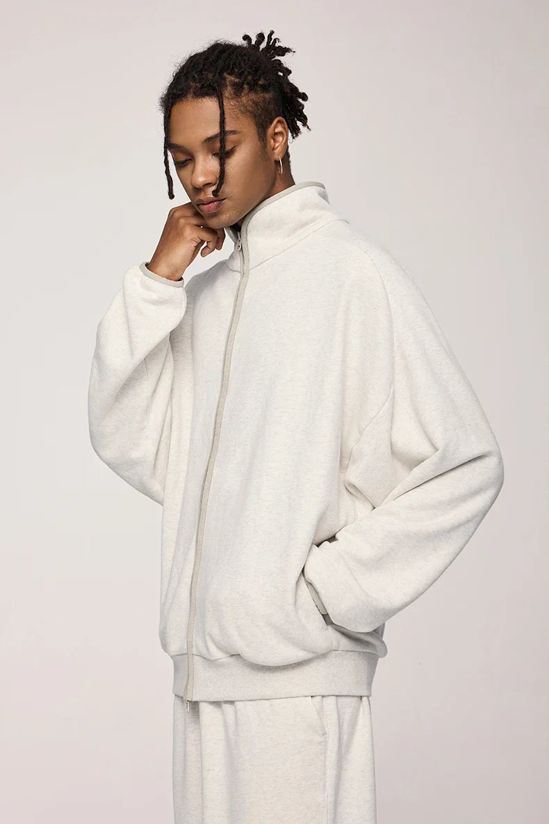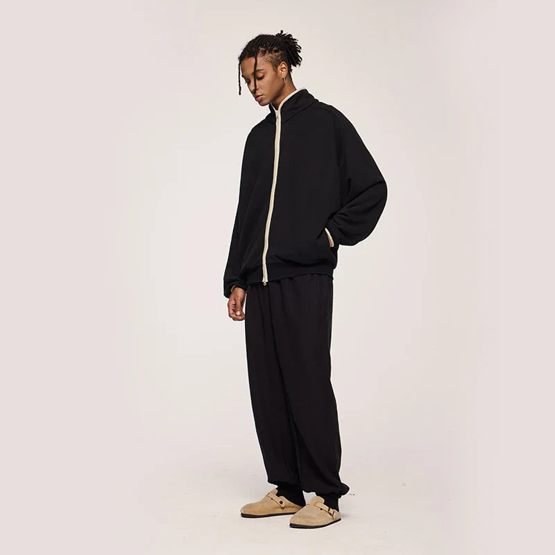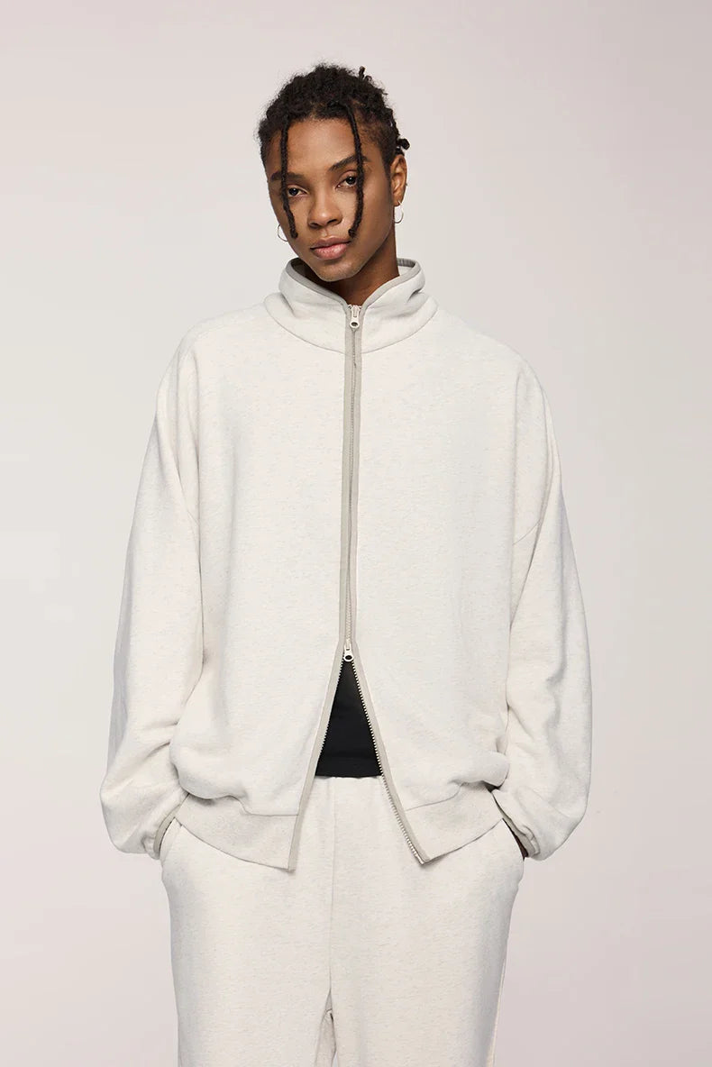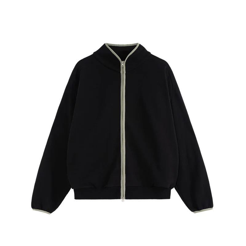 "Double Zipper Stand Collar Jacket: Sleek and functional. featuring a modern stand collar and dual-zip design for versatile styling."