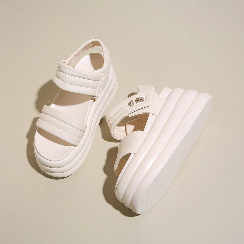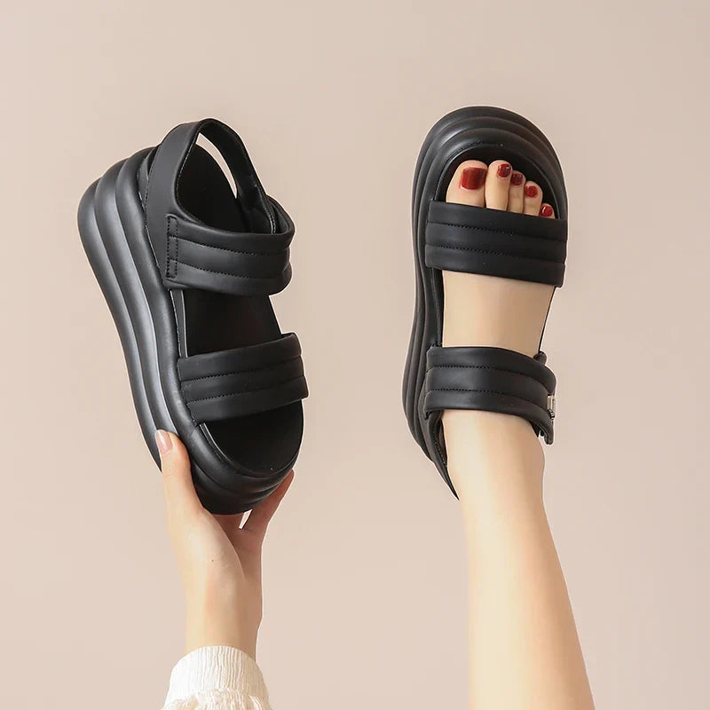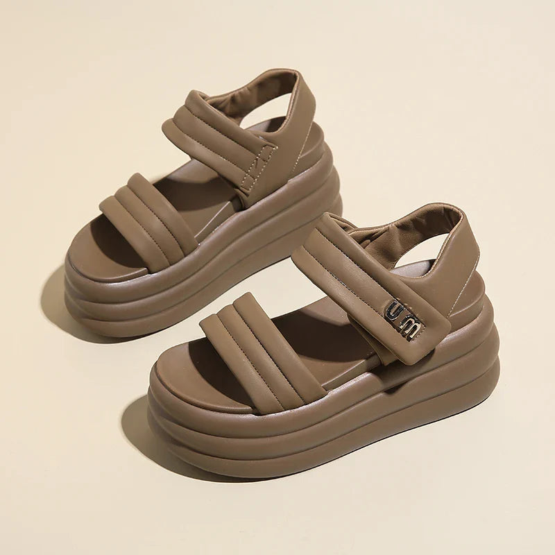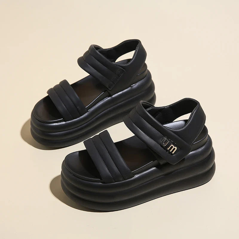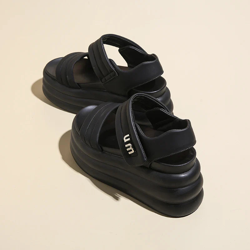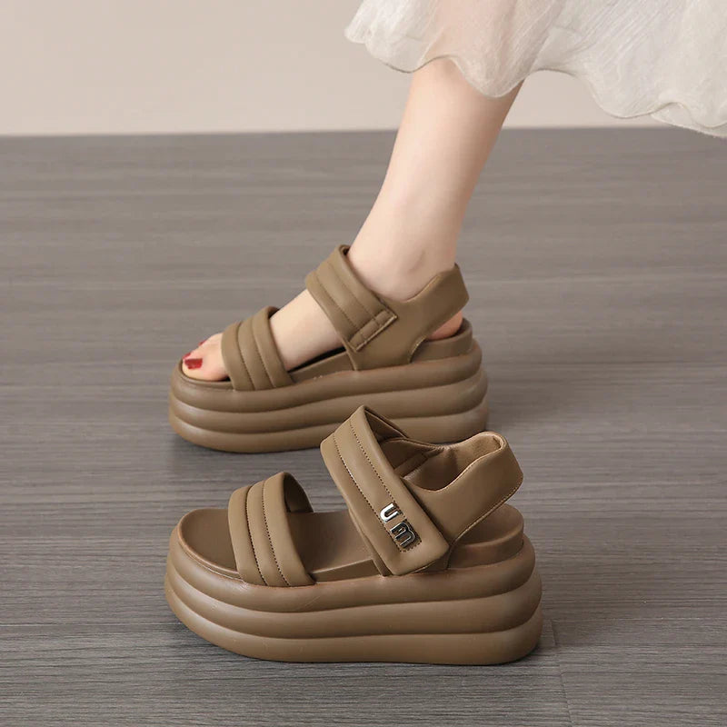 The Elevate Leather Chunky Wedge Sandals offer a bold lift with their chunky wedge design. combining sleek leather and modern style. Perfect for adding height and edge to any outfit.