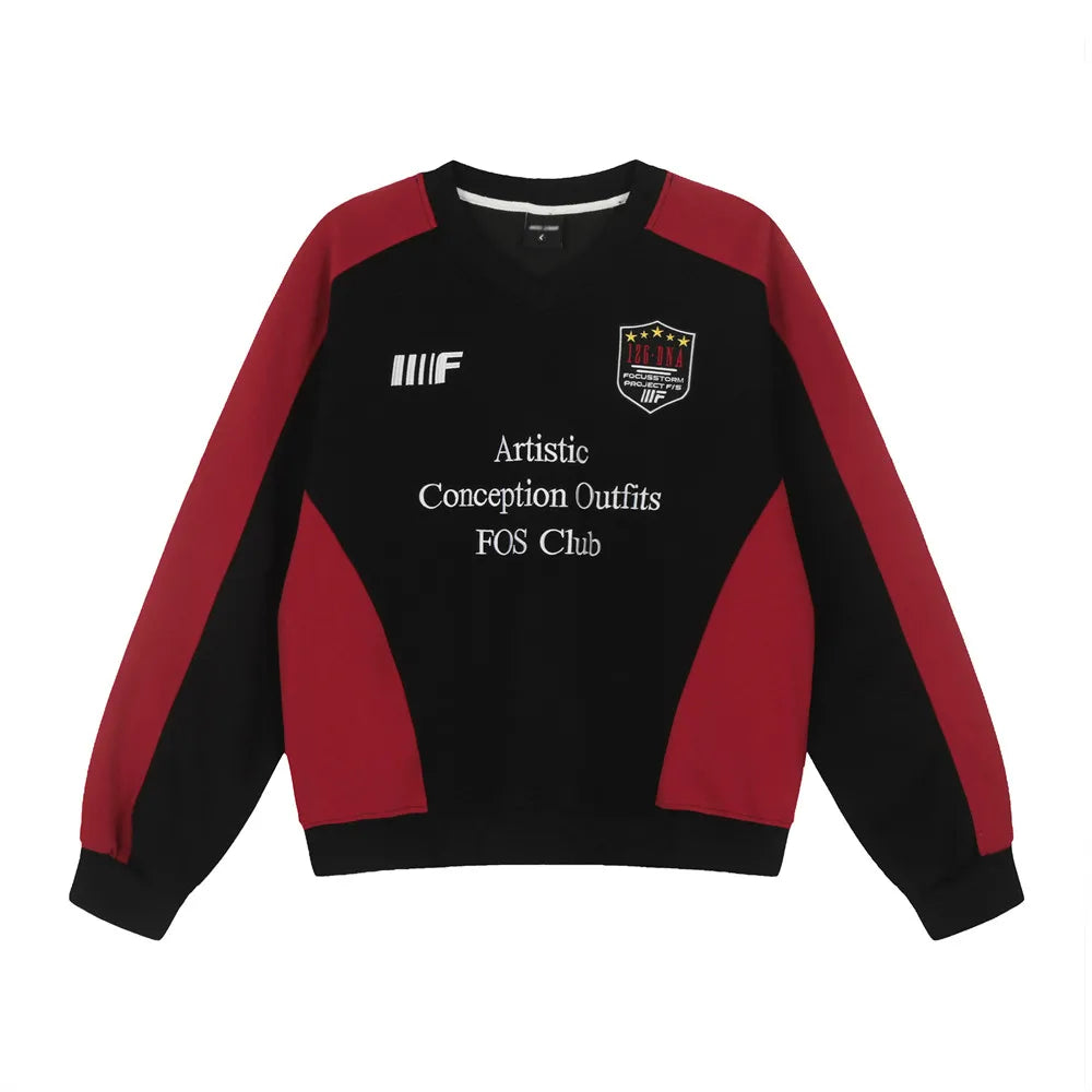 The Embroidered Letter Splice Sweatshirt blends bold embroidered lettering with stylish spliced fabric detailing. offering a unique and eye-catching streetwear statement.