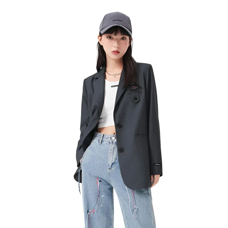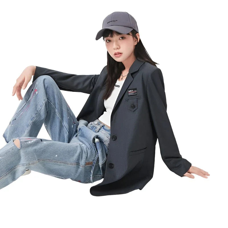Introducing Vonvex's Embroidery Cuff Office Lady Blazer. Blended polyester and viscose fabric offer slight stretch and standard thickness. With a single-breasted closure. notched collar. and regular-length sleeves. it exudes professional elegance. Adorned with embroidery cuffs and pockets. it's perfect for adding sophistication to your office attire.