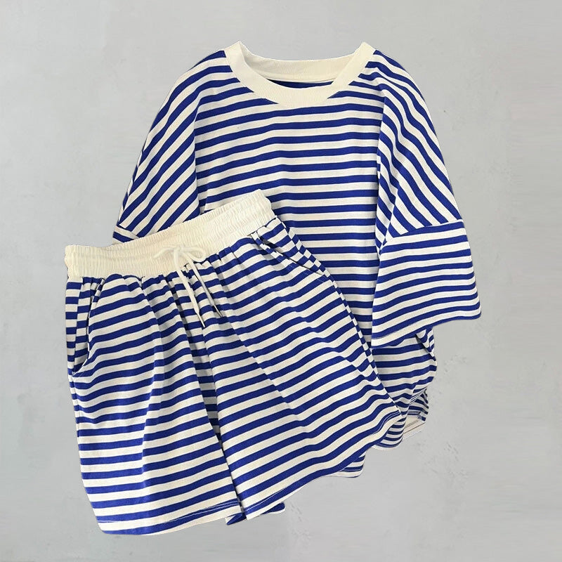 Elevate your spring wardrobe with the Emie Daly Striped Spring Set. a trendy two-piece outfit that combines style and comfort seamlessly. This ensemble comprises a relaxed shirt and matching shorts. both adorned with a fashionable stripe pattern. Made from exceptionally soft fabric. this set offers unparalleled comfort and is ideal for achieving a laid-back look.