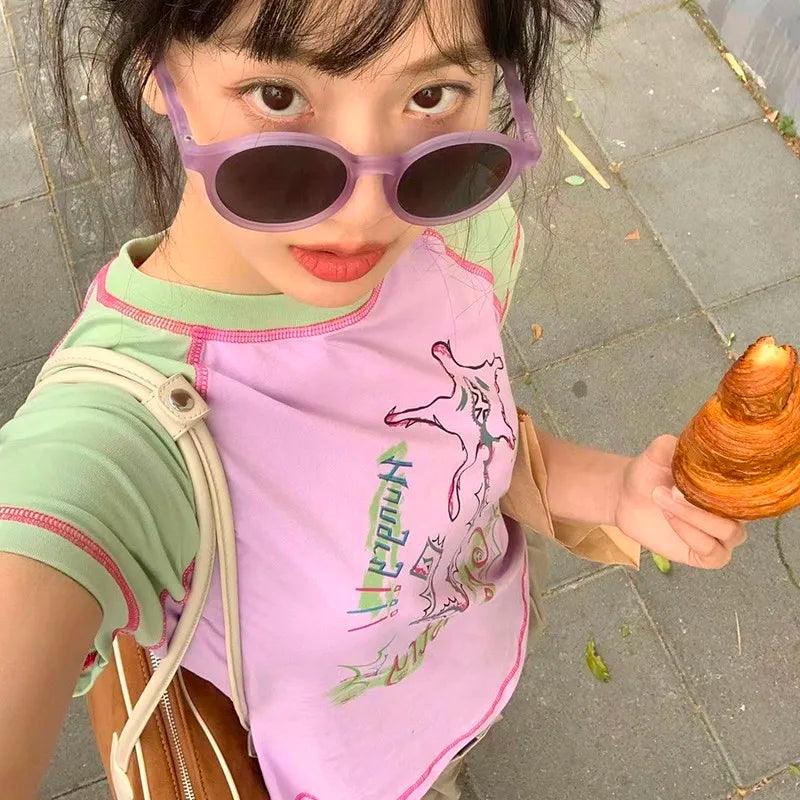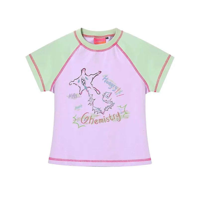 Introducing our Y2K Aesthetics Tee: a fusion of Japanese Harajuku style with 2000s Kawaii graphics. Embrace nostalgia with whimsical Fairycore patchwork detailing on this short sleeve top.