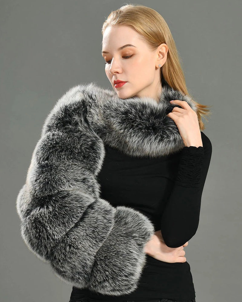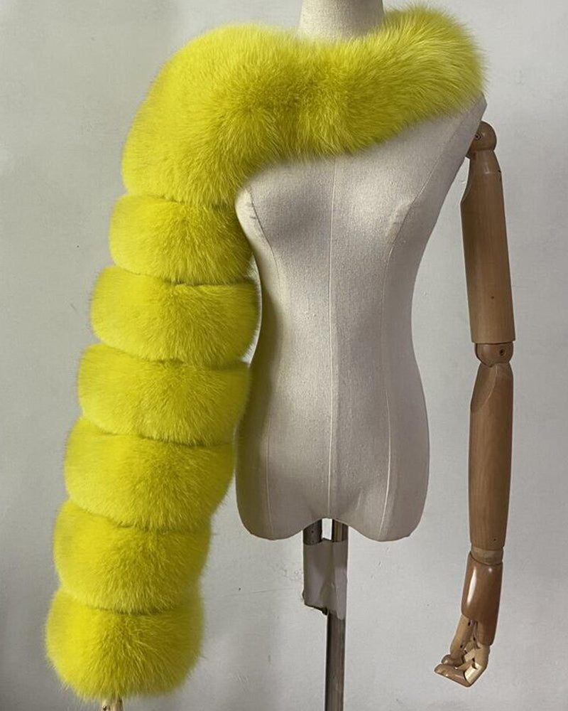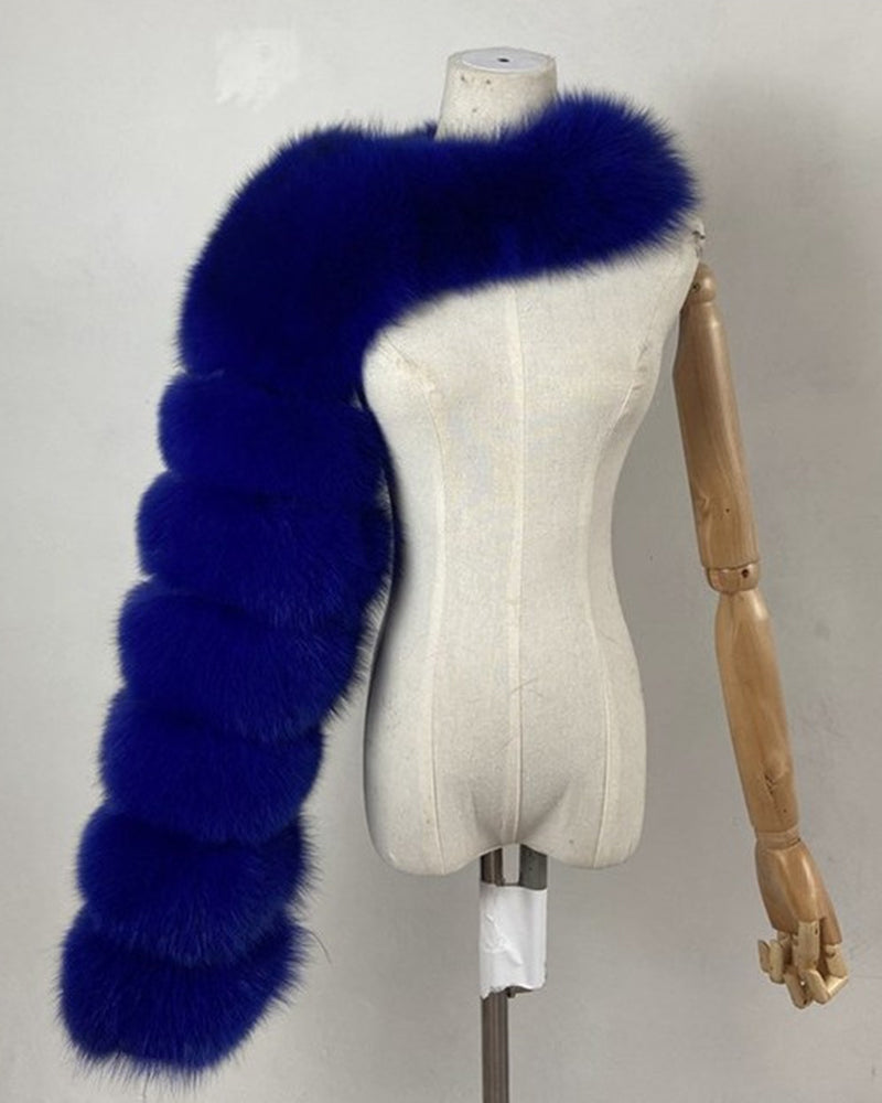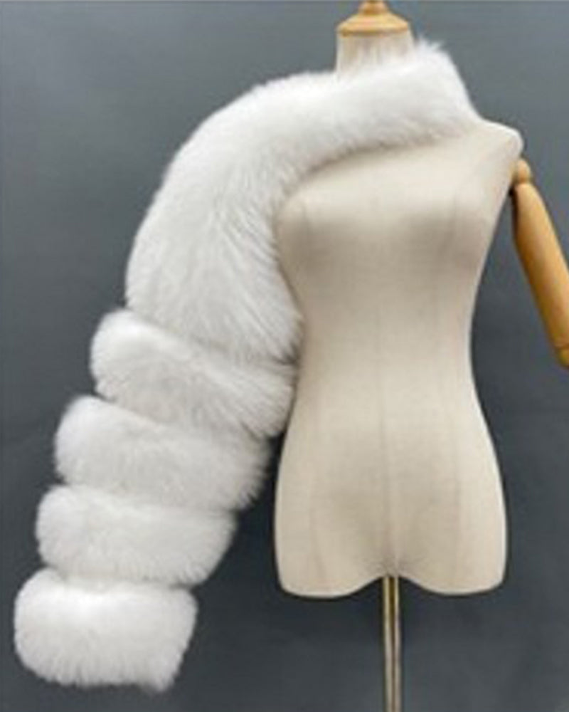 �Design: The women's fluffy one sided faux fur sleeve is the newest style this year. the bubble faux fur sleeve has 5 solid colors available: grey. brown. burgundy. dark green and off white. There is a buckle to close around the neck.