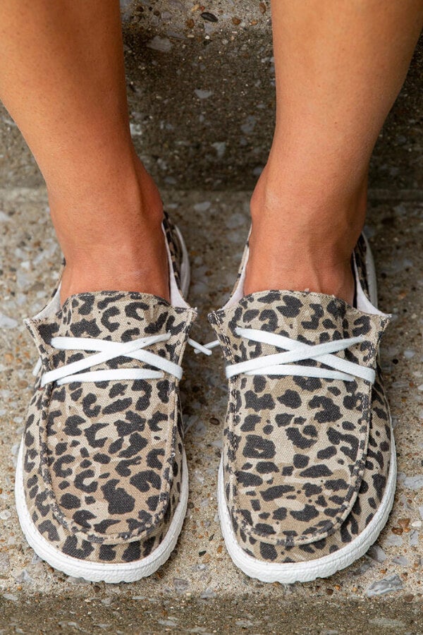 Fashion Leopard Lace Up Round Toe Flat Sneakers