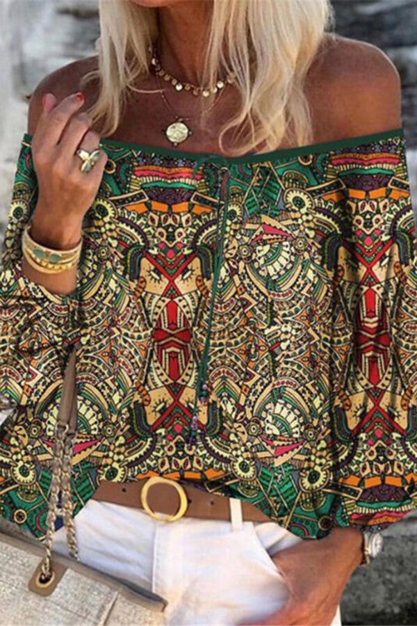 Decrease quantity for Fashion Regular Print One Neck Chiffon Blouse