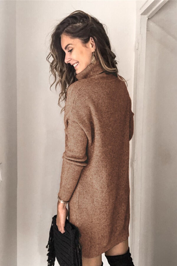 Increase quantity for Fashion Solid Color Turtleneck Sweater Dress