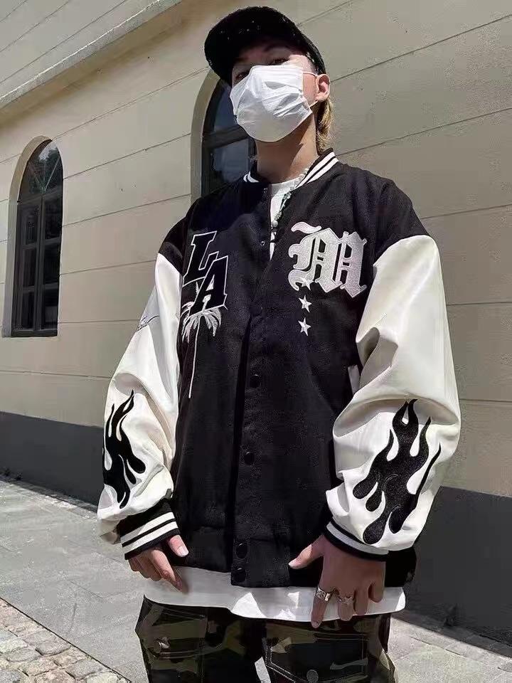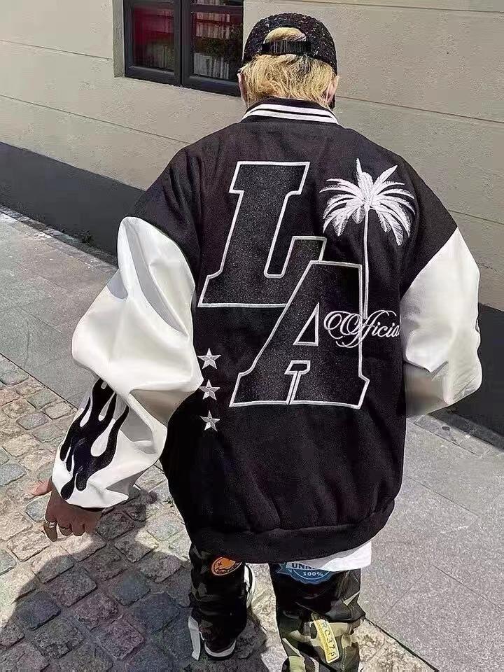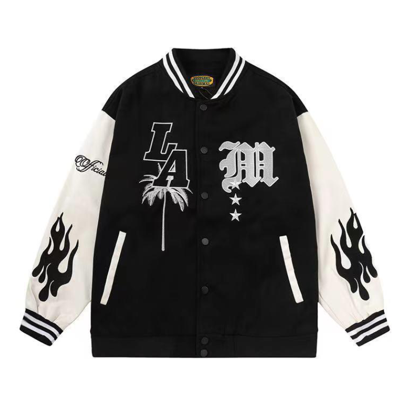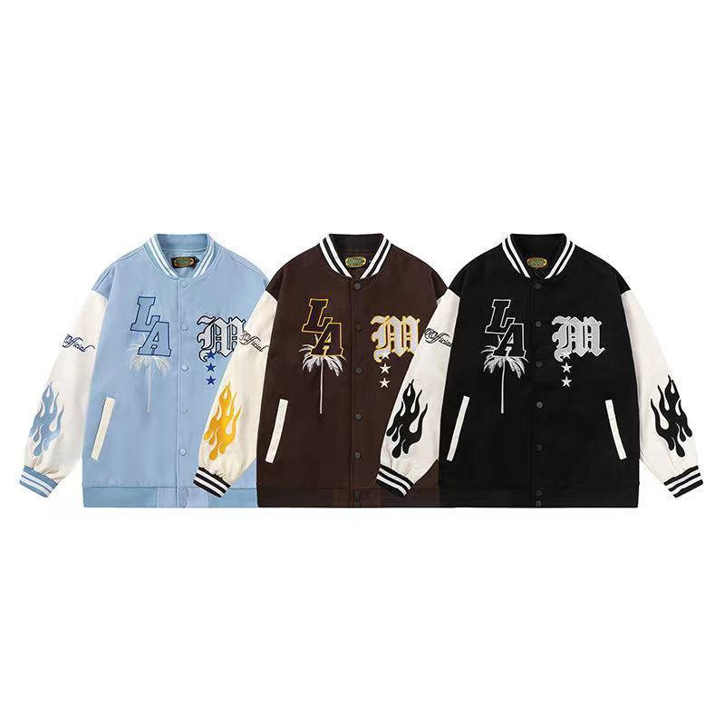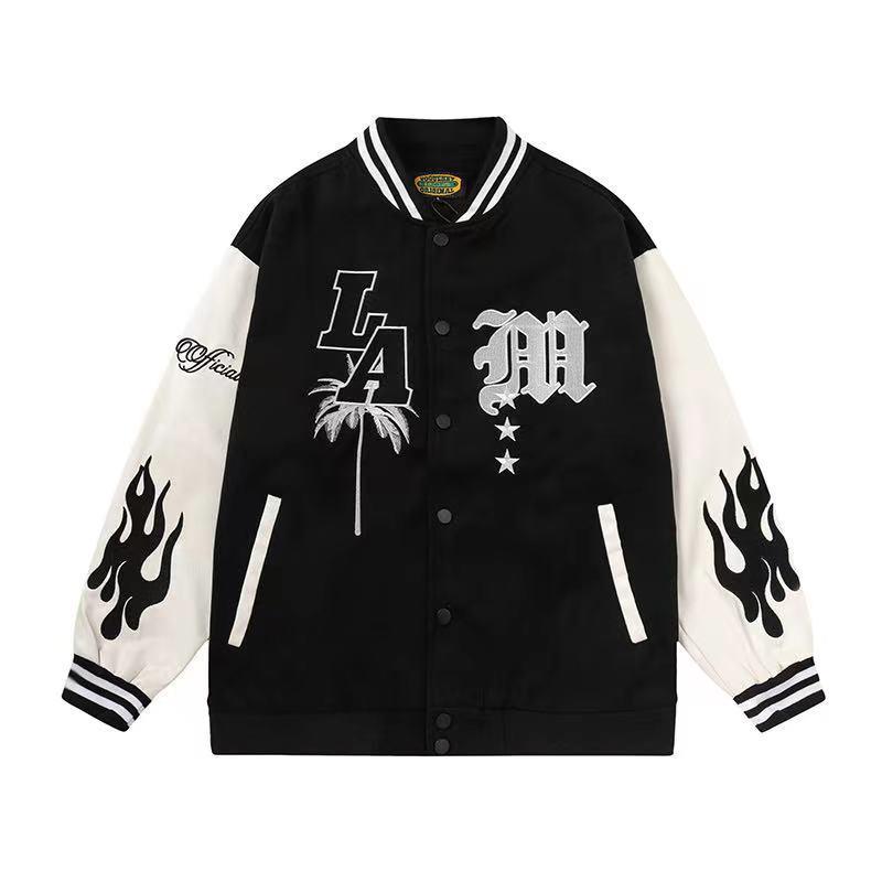 Ignite your style with Vonvex's Flamy Baseball Palm Tree Jacket—tropical vibes meet fiery flair. Burn bright. stay cool! #Vonvex