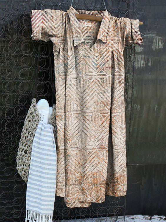 Vintage Print V-Neck Cotton Linen Loose Long Sleeve Dress