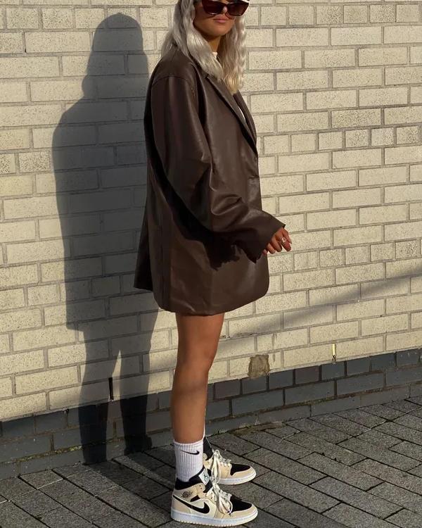 This oversized suit jacket is available in a variety of colors. Features a classic single-button front. lapels and soft and supple lambskin.