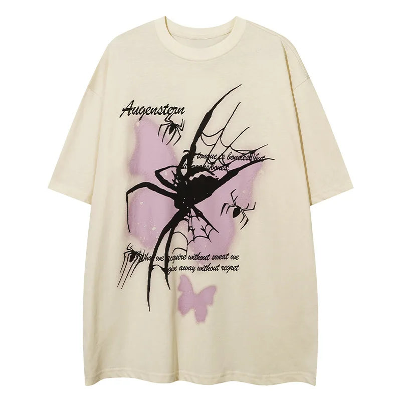 Discover Vonvex's Gothic Spider Butterfly Graphics T-Shirt. Crafted from cotton broadcloth. featuring an O-neck collar and striking cartoon graphics. Perfect for edgy. casual style.