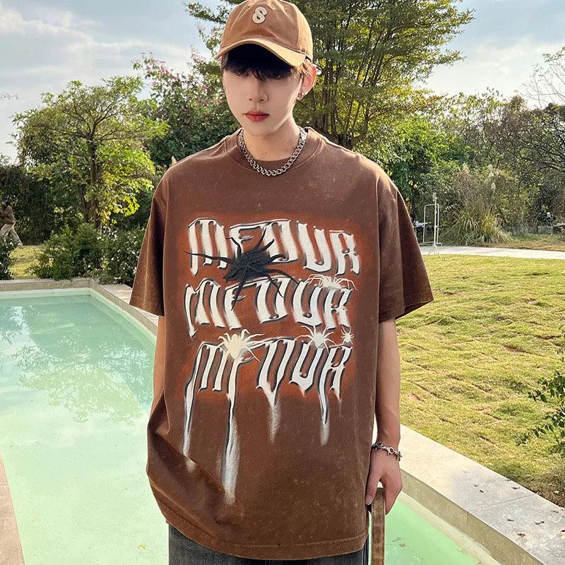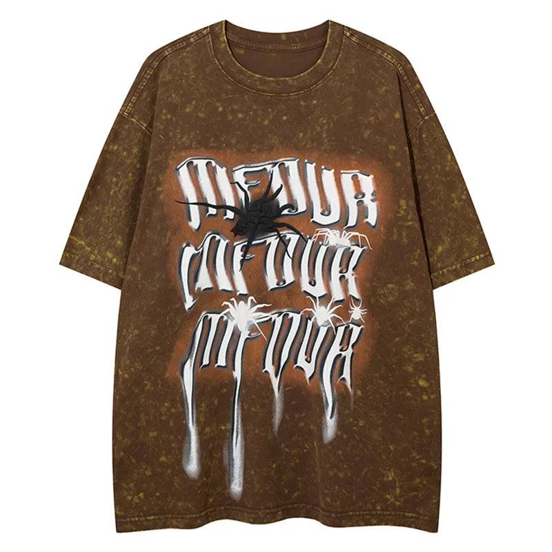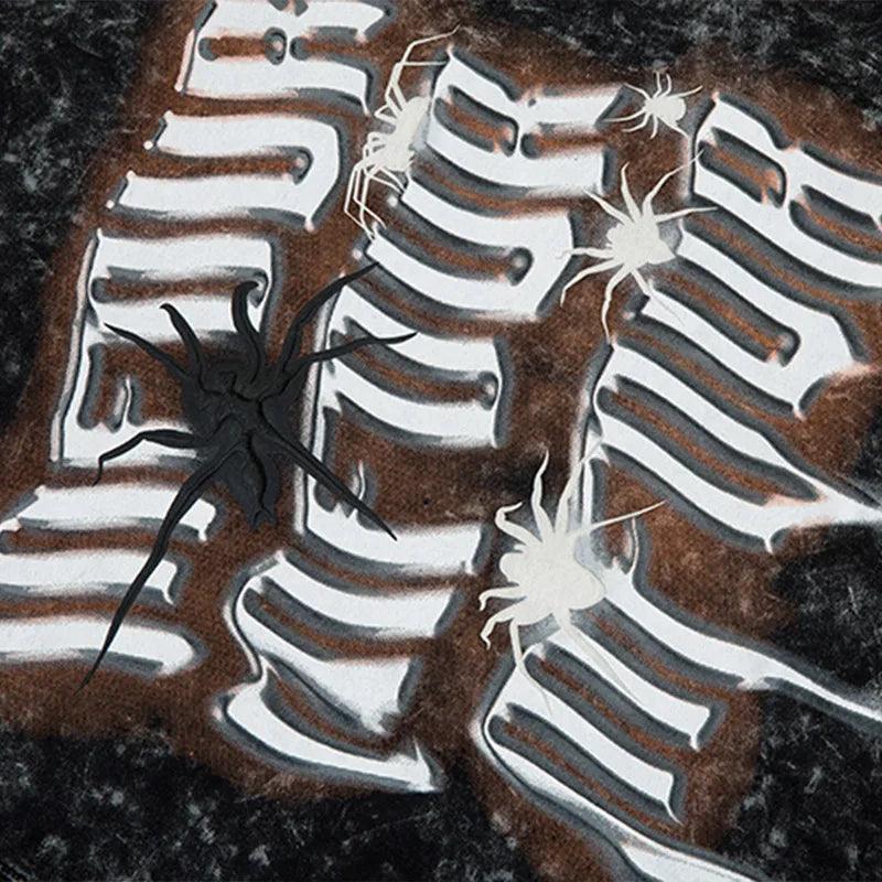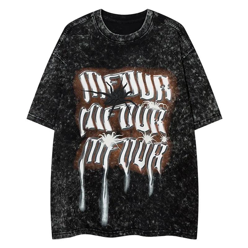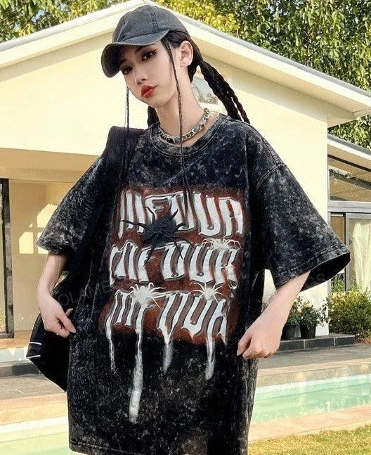 Get the vintage street style look with our Gothic Spider Print T-Shirt. Made of cotton broadcloth with an O-Neck collar and printed pattern. perfect for Y2K vibes.