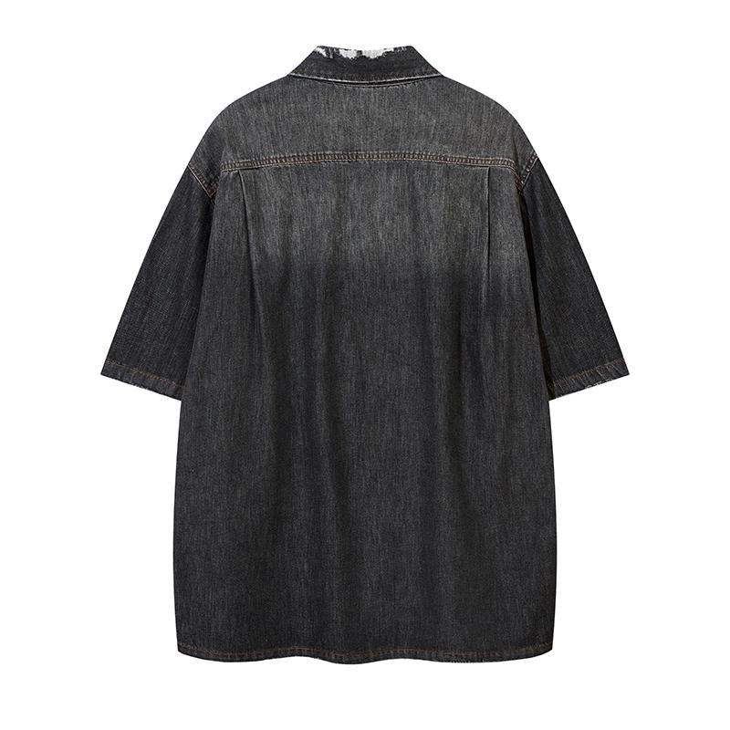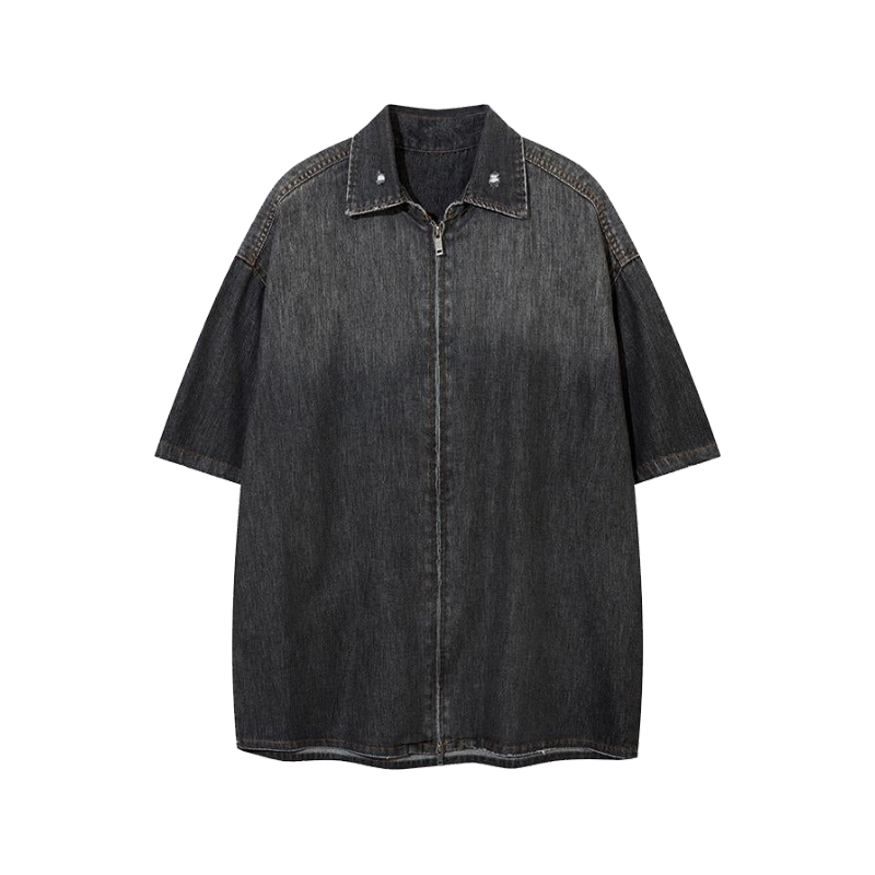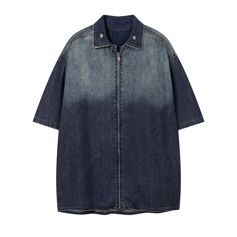 Shop the Gradient Denim Zipper Shirt by Vonvex Clothing. Featuring a stylish gradient design and durable denim. this shirt is perfect for any streetwear look!