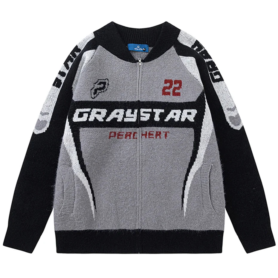 The Gray Star Zippered Hip Hop Jacket features a sleek. urban design with bold zip accents and a star graphic. perfect for adding edge to your streetwear look.