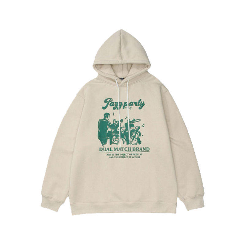 The Jazz Party Hoodie features a playful cartoon design and a cozy fleece thickness. With a loose fit and hooded collar. this cotton and polyester blend hoodie is perfect for relaxed. stylish comfort.
