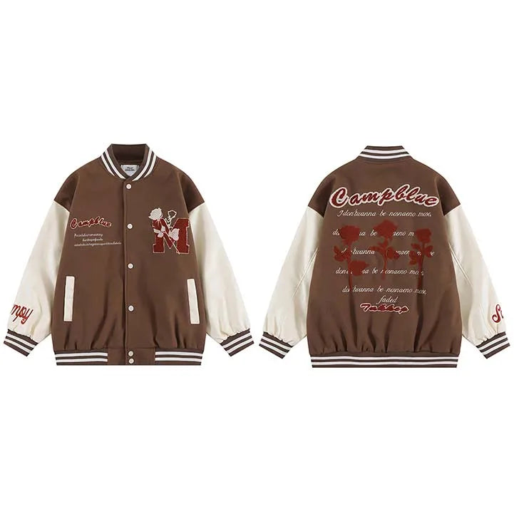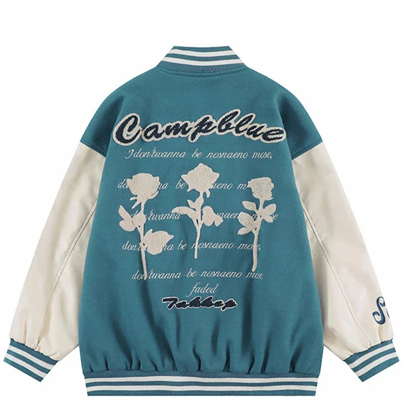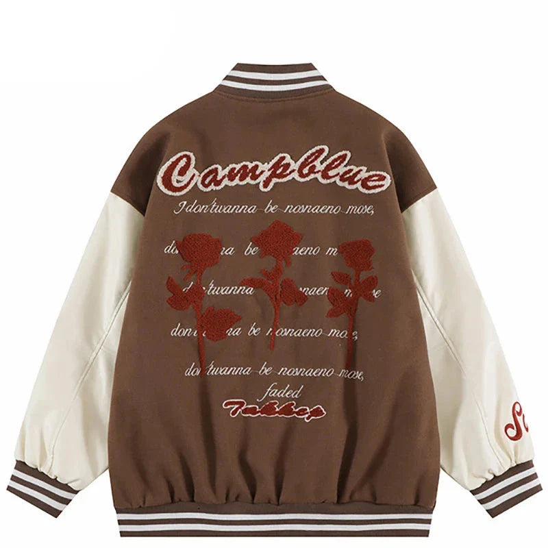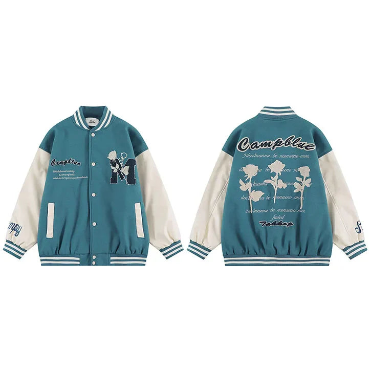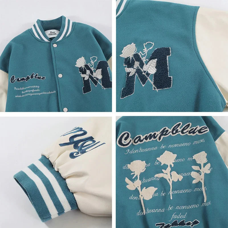 The Harajuku Floral Rose Varsity Jacket combines classic varsity style with bold Harajuku-inspired floral rose embroidery. Perfect for adding a unique.