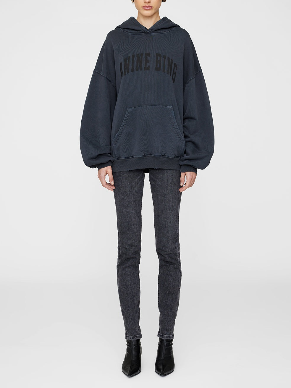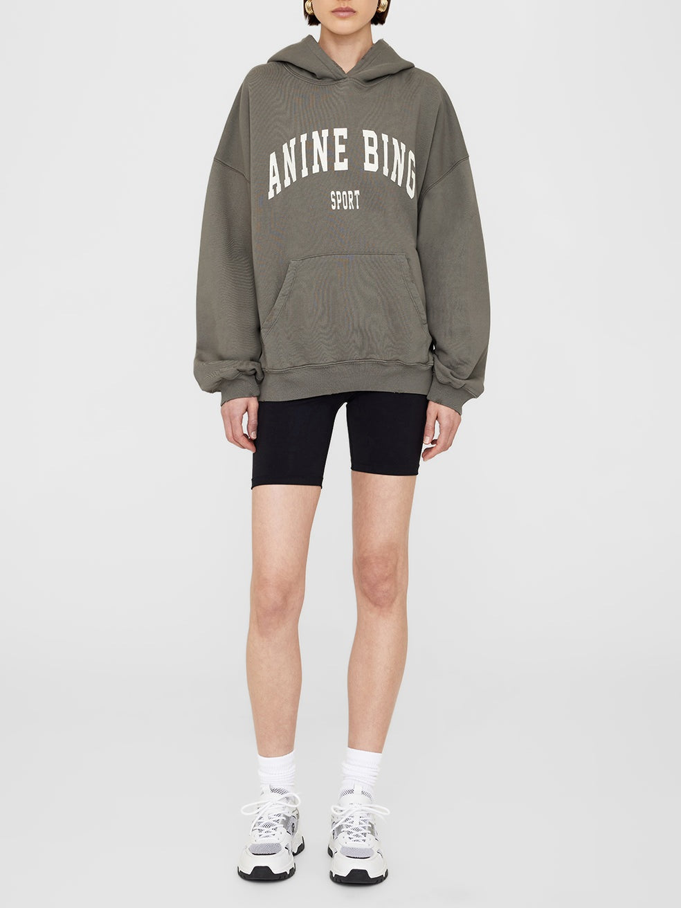 This oversized hoodie features graphic lettering at the chest with a functional front kangaroo pocket.
