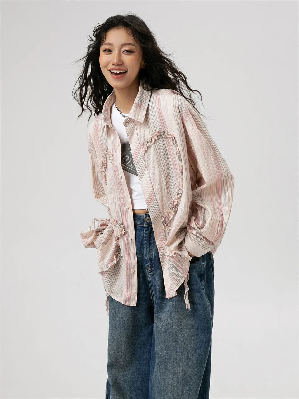 Show your softer side with Vonvex's Heart Embroidery Long Sleeve Shirt—delicate details meet timeless style. Wear your heart on your sleeve! #Vonvex