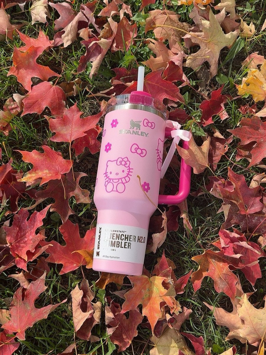 Carry your drinks around in style with this adorable Hello Kitty bow flower tumbler! These Stanley quenchers are known for being able to fit vehicle cupholders and for temperature well.