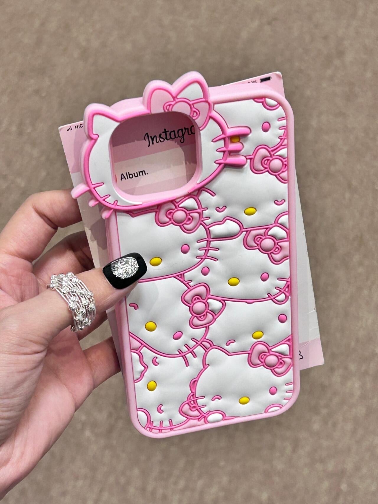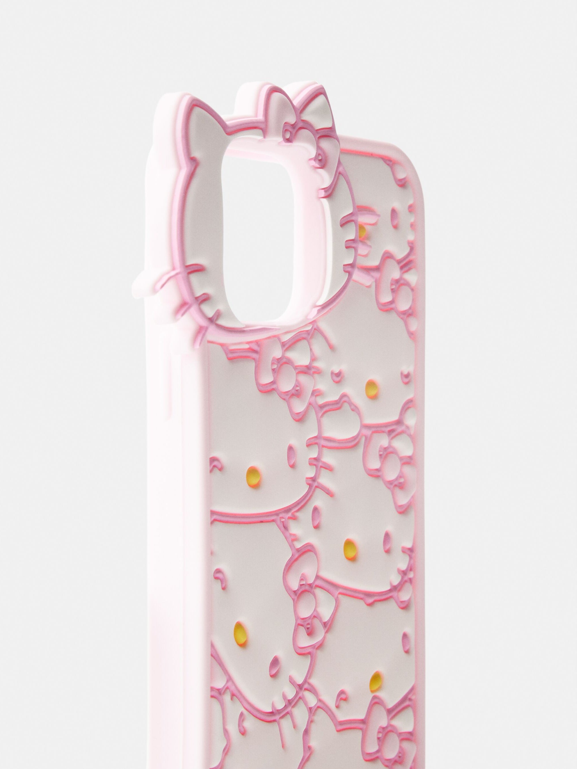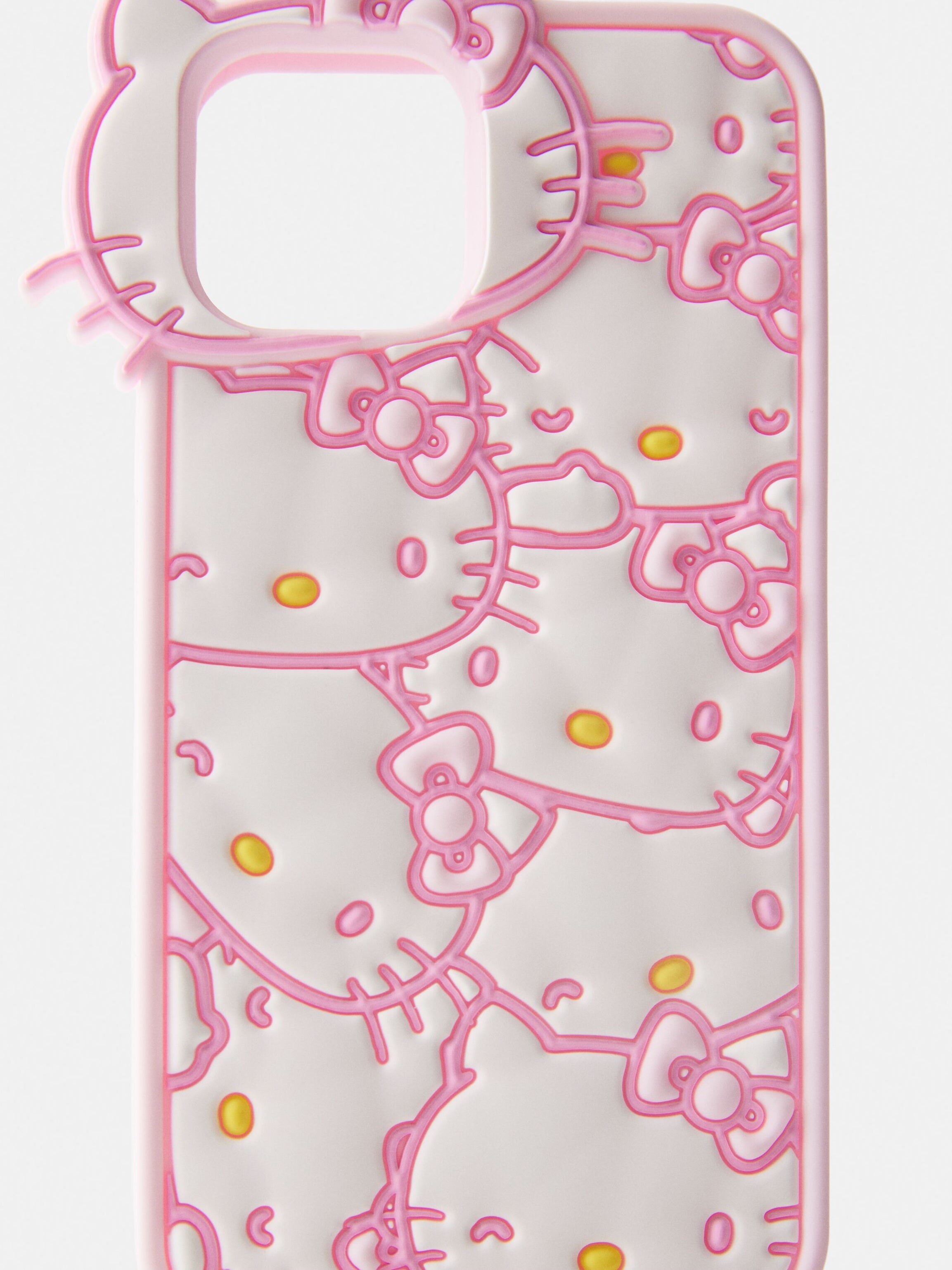 This case features a delightful pattern of Hello Kitty faces outlined in pink. It features a unique cutout at the top shaped like Hello Kitty's head which frames the camera area.