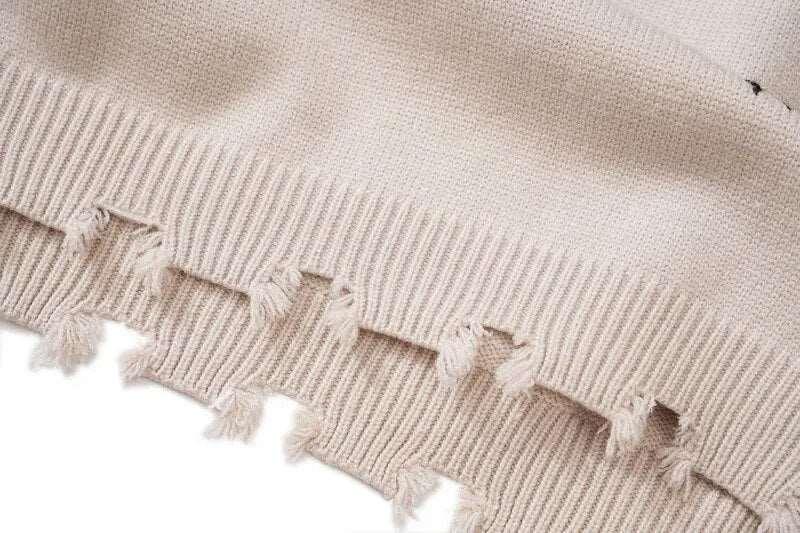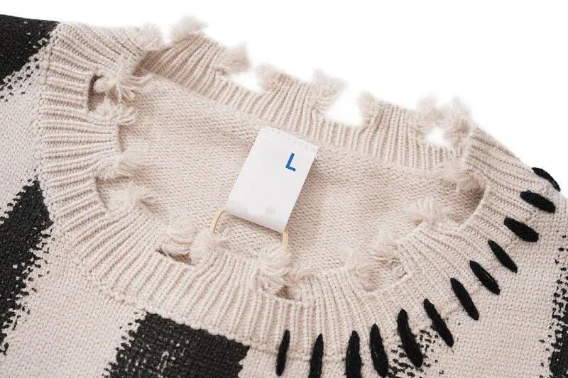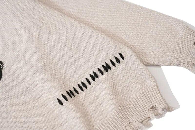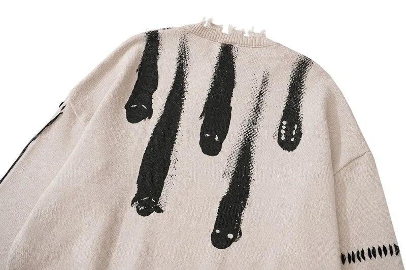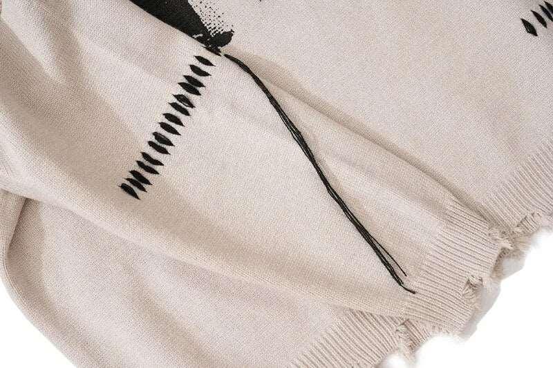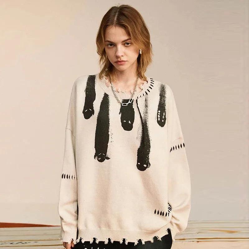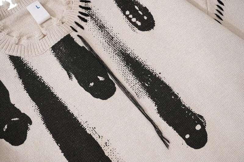 Crafted from polyester and acrylic. Hole Ghost Graphic Streetwear boasts a standard thick collar. O-Neck design. and regular sleeve style. Featuring an abstract pattern and computer-knitted techniques. this streetwear also has a standard wool quality.