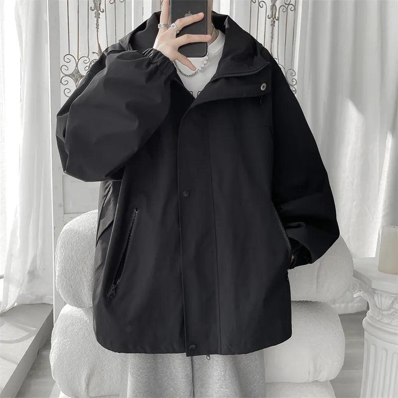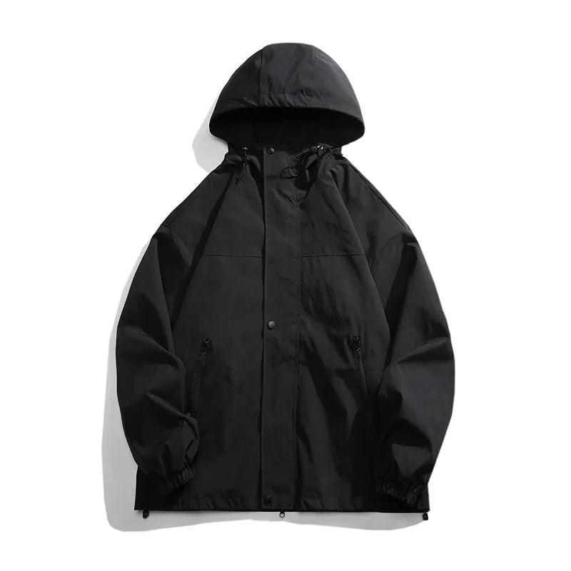 This bomber jacket is crafted with a polyester outer layer. It has a standard thickness and 100% polyester lining. It has a good collar with a zipper closure. a regular sleeve style. and a hood. The pattern is a solid color.